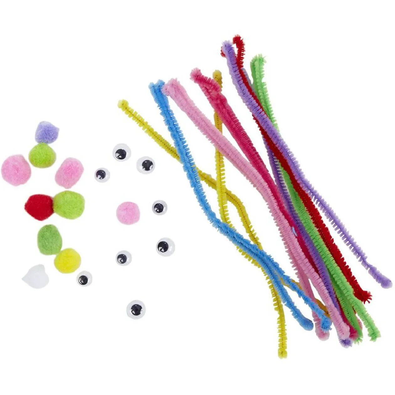Ce set de création à base de fil chenille comprend des boules multicolores et des yeux mobiles pour donner vie à toutes vos idées de personnages et animaux.