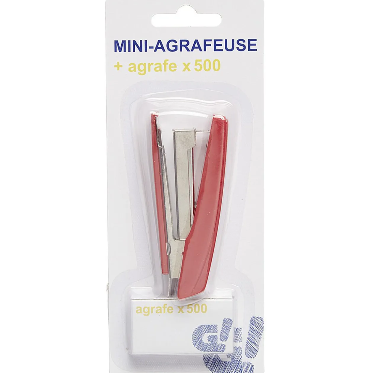 Agrafeuse mini avec 500 agrafes, rouge ou bleu.