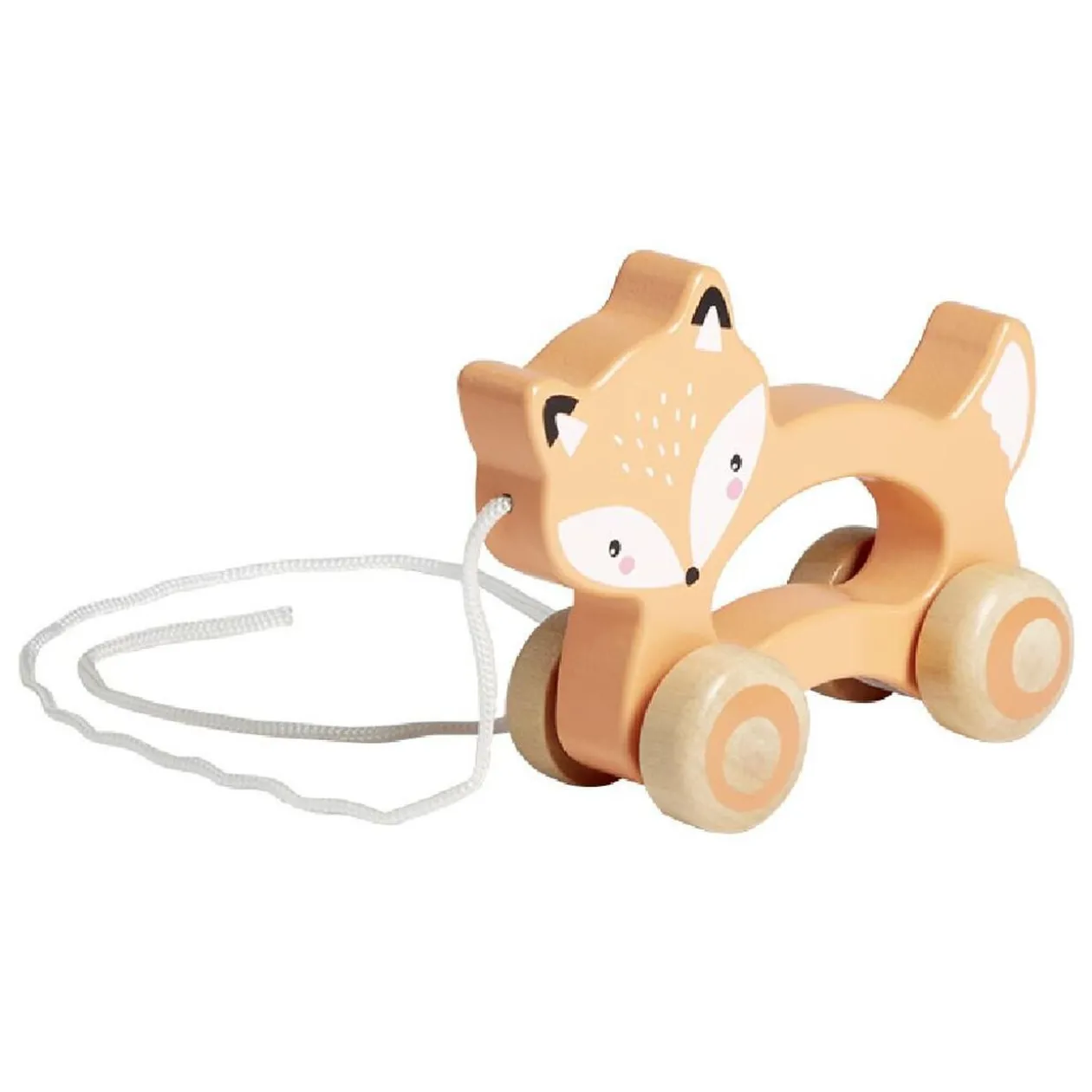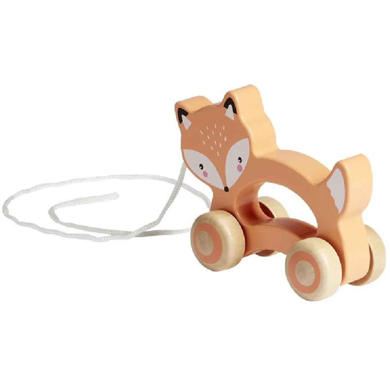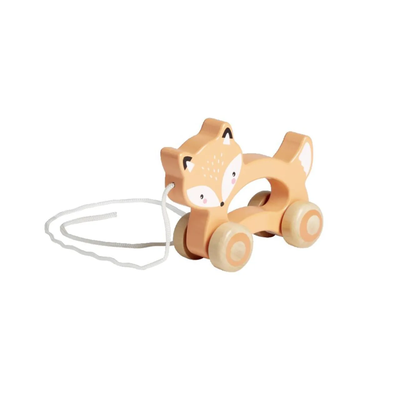 Renard en bois à faire rouler, idéal pour que votre enfant promène son petit animal préféré.