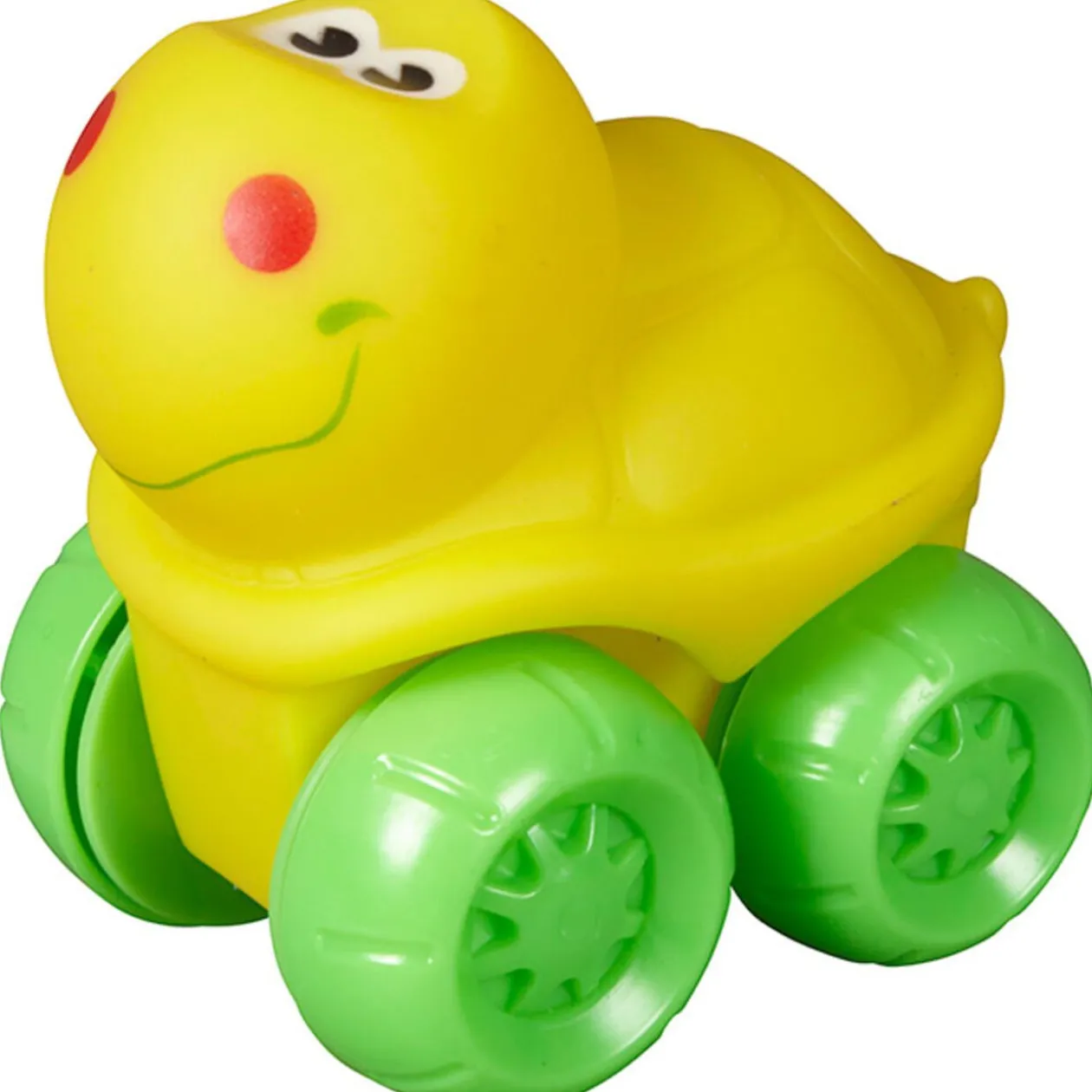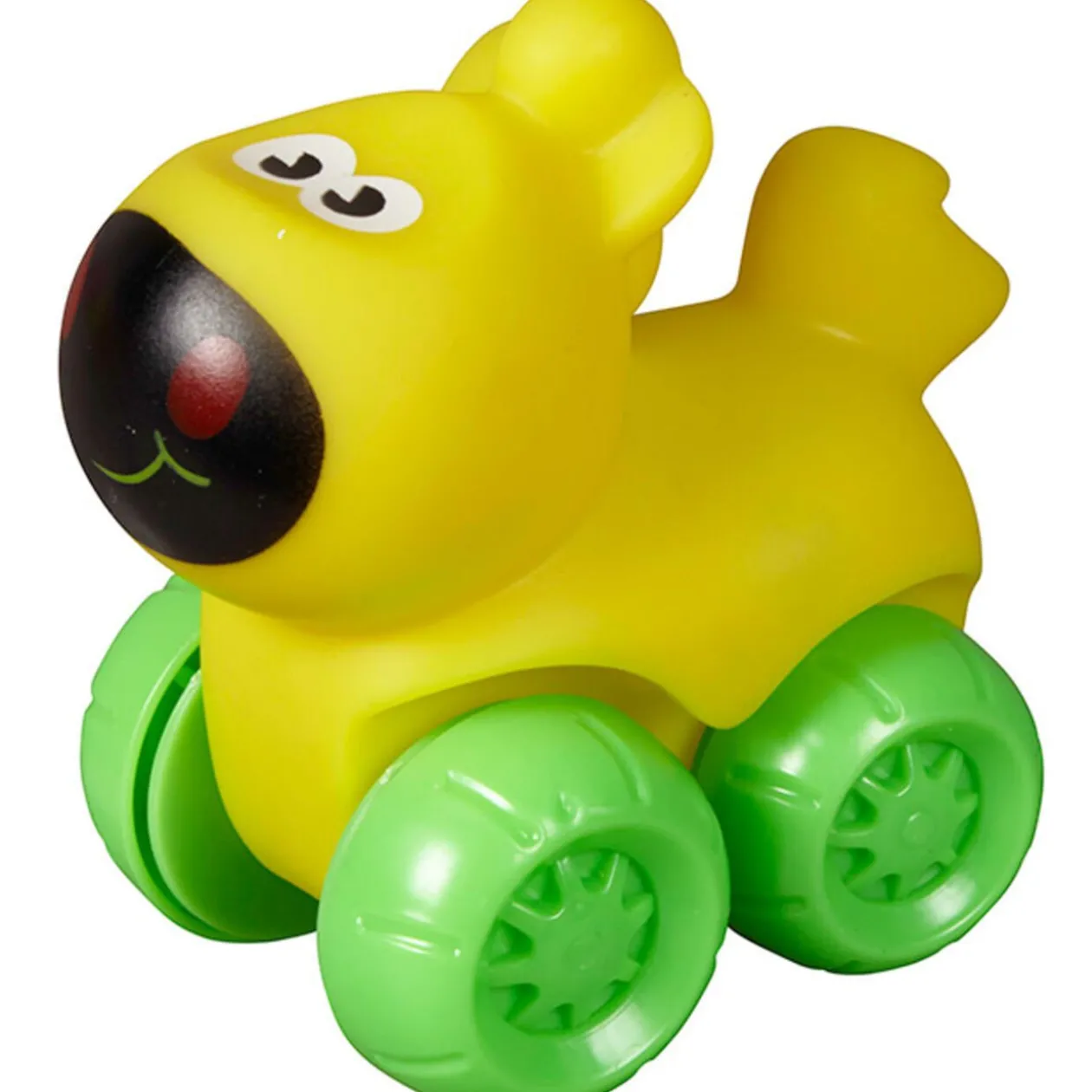 Animal roulant en plastique souple. Nombreux modèles proposés : vache, cochon, poule… Dès 1 an.
