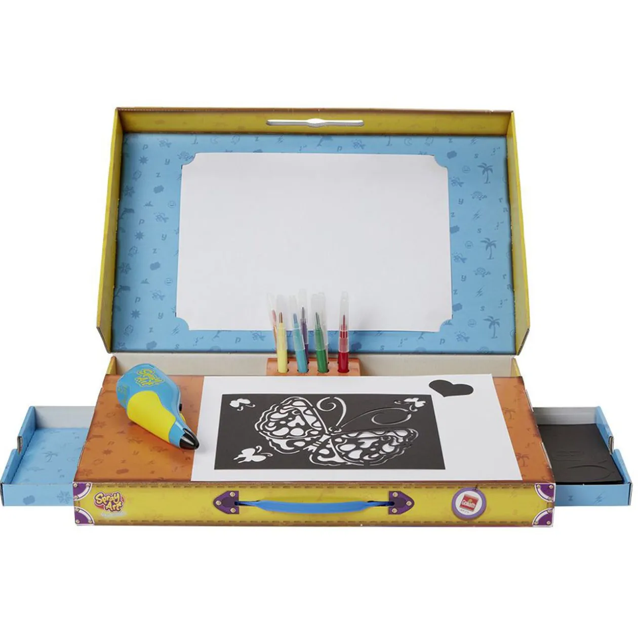 Facile à appliquer grâce au soufleur, aux 100 pochoirs et aux feutres magiques inclus dans la boîte.