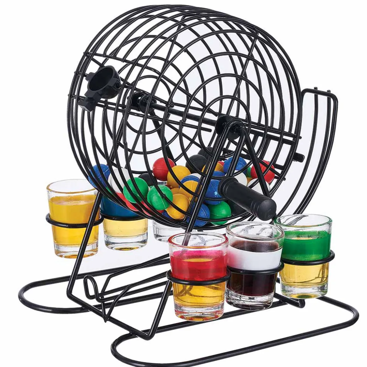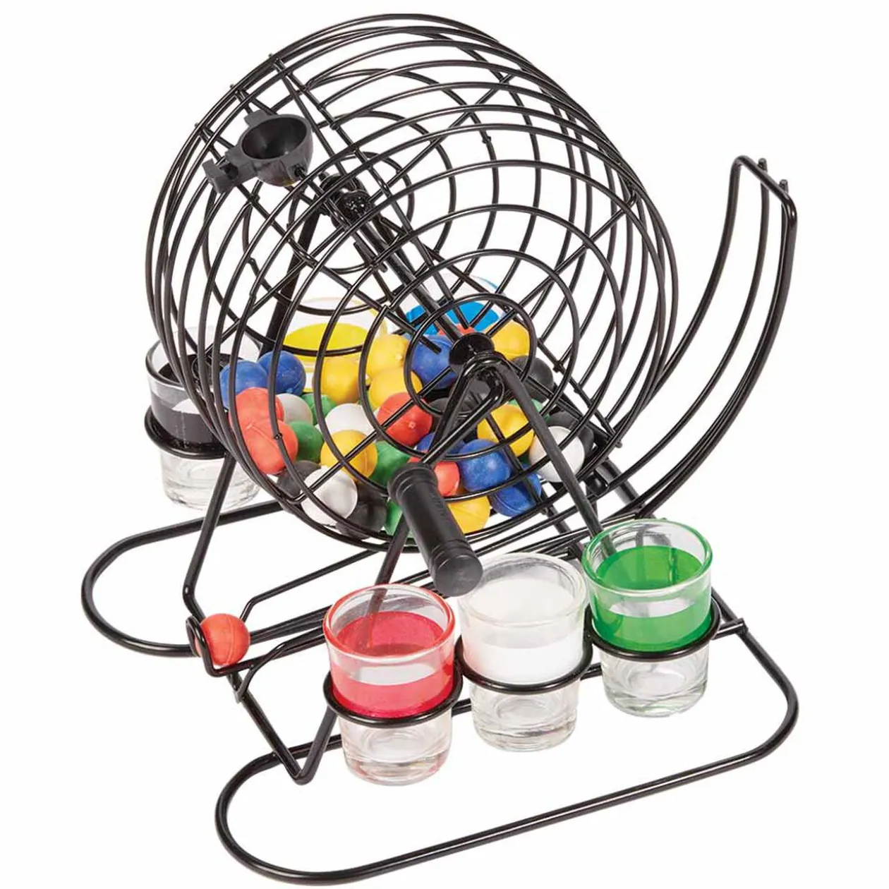 Jeu à boire façon Bingo. Remplissez vos shooters d’alcools différents, chaque shooter correspond à une couleur, faites tournez la roue jusqu’à ce qu’une des boules en sorte, le joueur doit alors boire le shooter qui est de la même couleur que la boule. Si une boule sort dont le verre a déjà été bu, le joueur ne boit pas et la partie continue jusqu’à ce que tous les verres soient vidés.