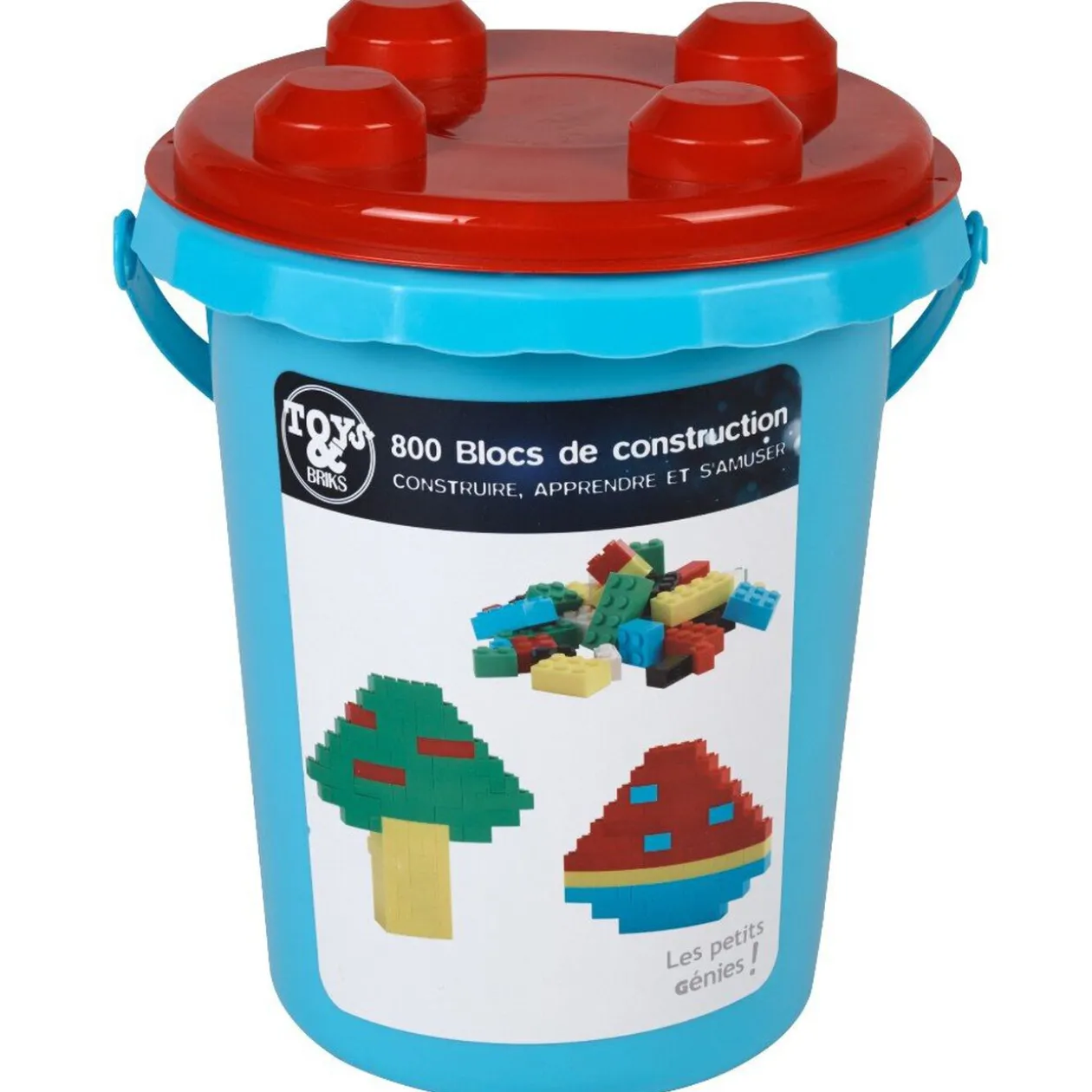 Bloc de construction en plastique 800 pièces, différents coloris et formes. Dim boîte : 24 x 10 x 25 cm. Dès 3 ans