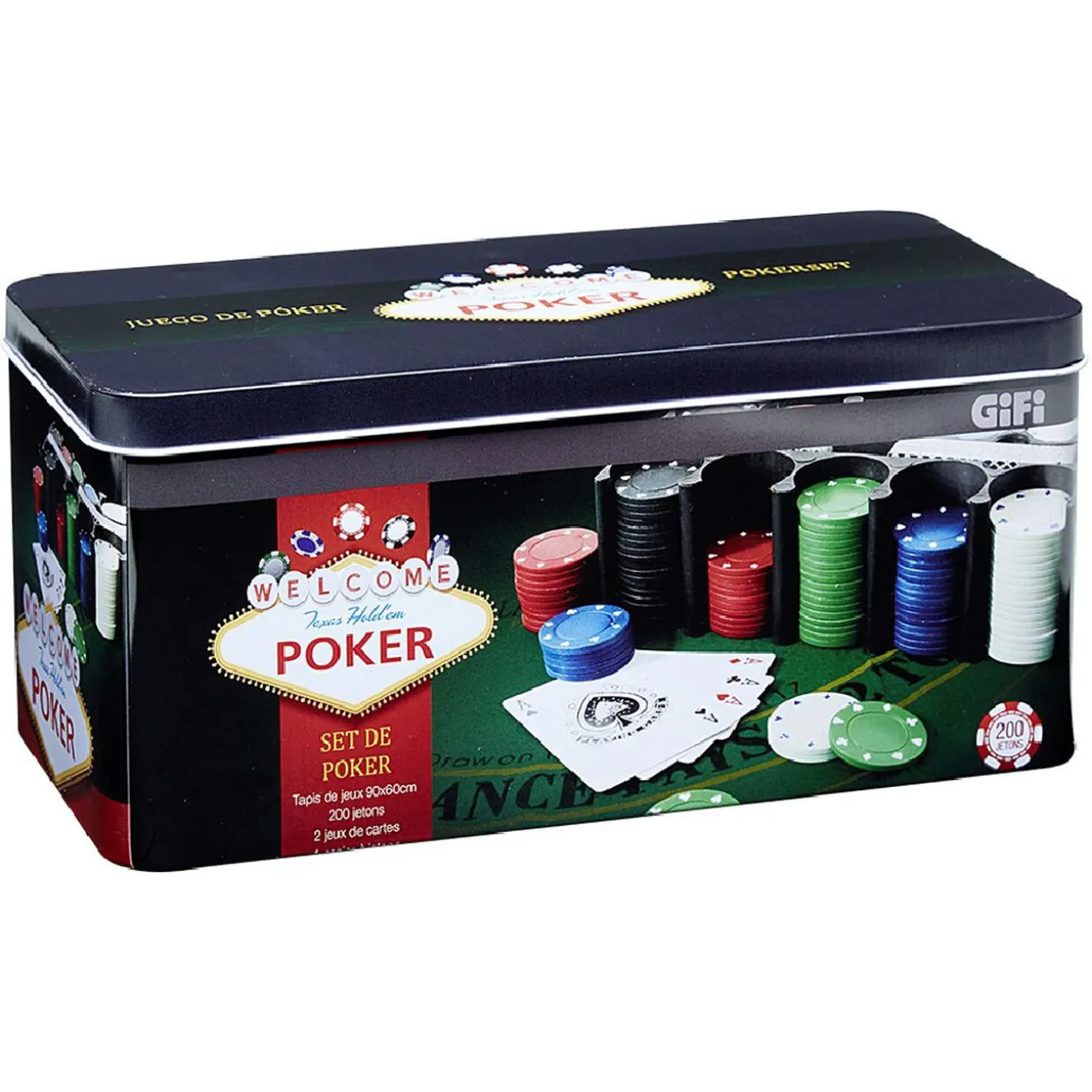 Contient : 200 jetons, le plateau de jeux, le tapis et 2 jeux de cartes.