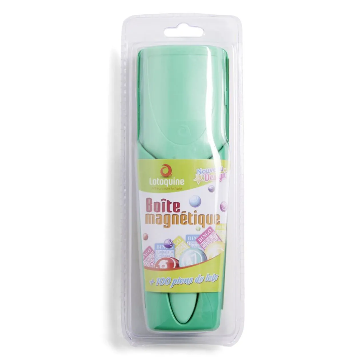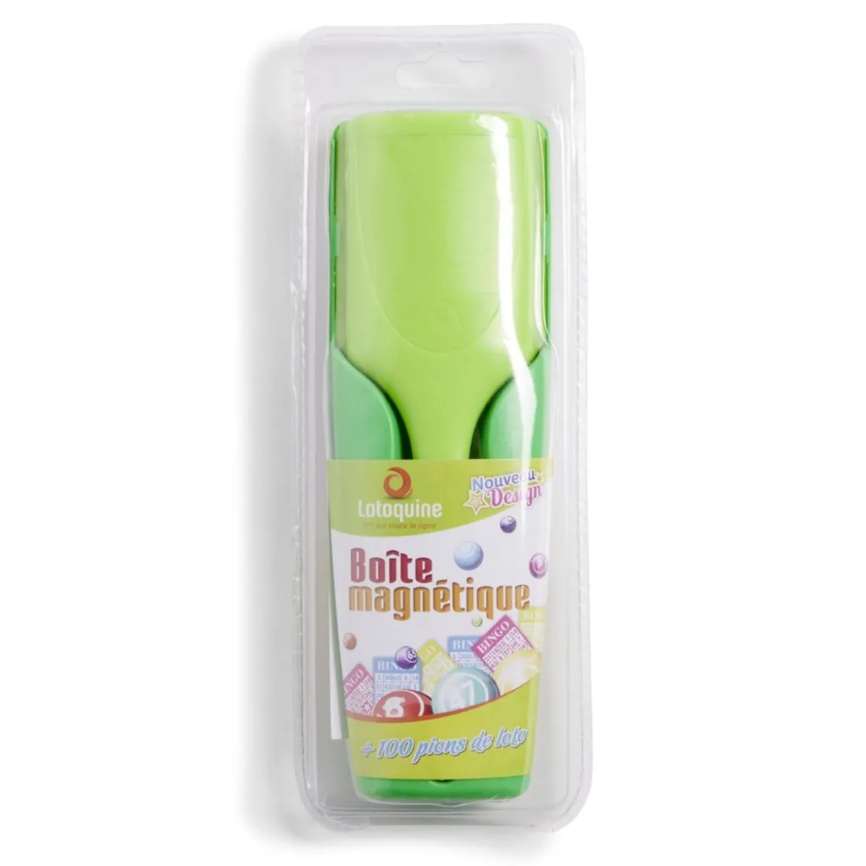 Soyez bien équipé pour jouer au loto avec cette boîte magnétique comprenant 100 jetons et 1 aimant à jetons.