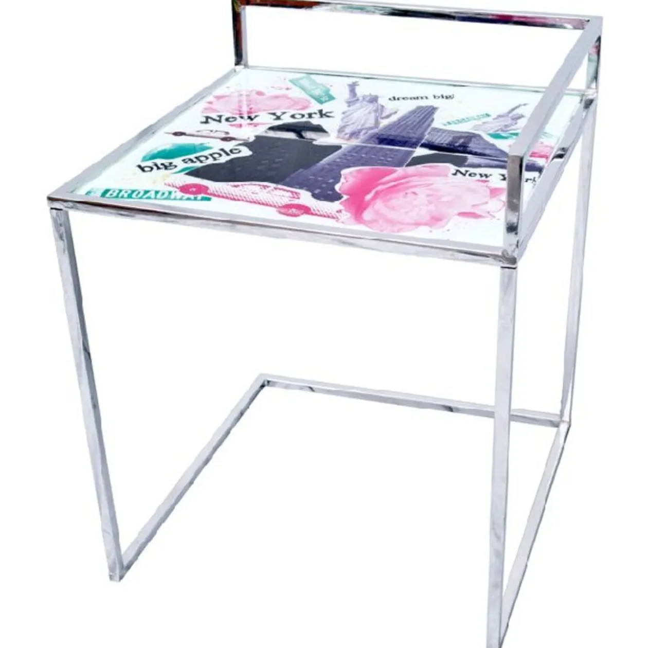 GiFi vous propose ce bout de canapé : un rangement d’appoint où poser quelques petits objets. Son plateau en verre est orné de motifs rappelant New York, pour donner à votre salle de séjour un air d’outre-Atlantique, de modernité et d’évasion. Avis aux fans de la Grosse Pomme ! Sa structure en métal donne à cette petite table stabilité et solidité, et son plateau en verre trempé lui confère une impression de légèreté.Dimensions : 50xH63x50cm.N’hésitez pas à conjuguer ce modèle inspiré des États-Unis avec les autres objets de la collection Jidoo, aux styles et inspirations similaires !