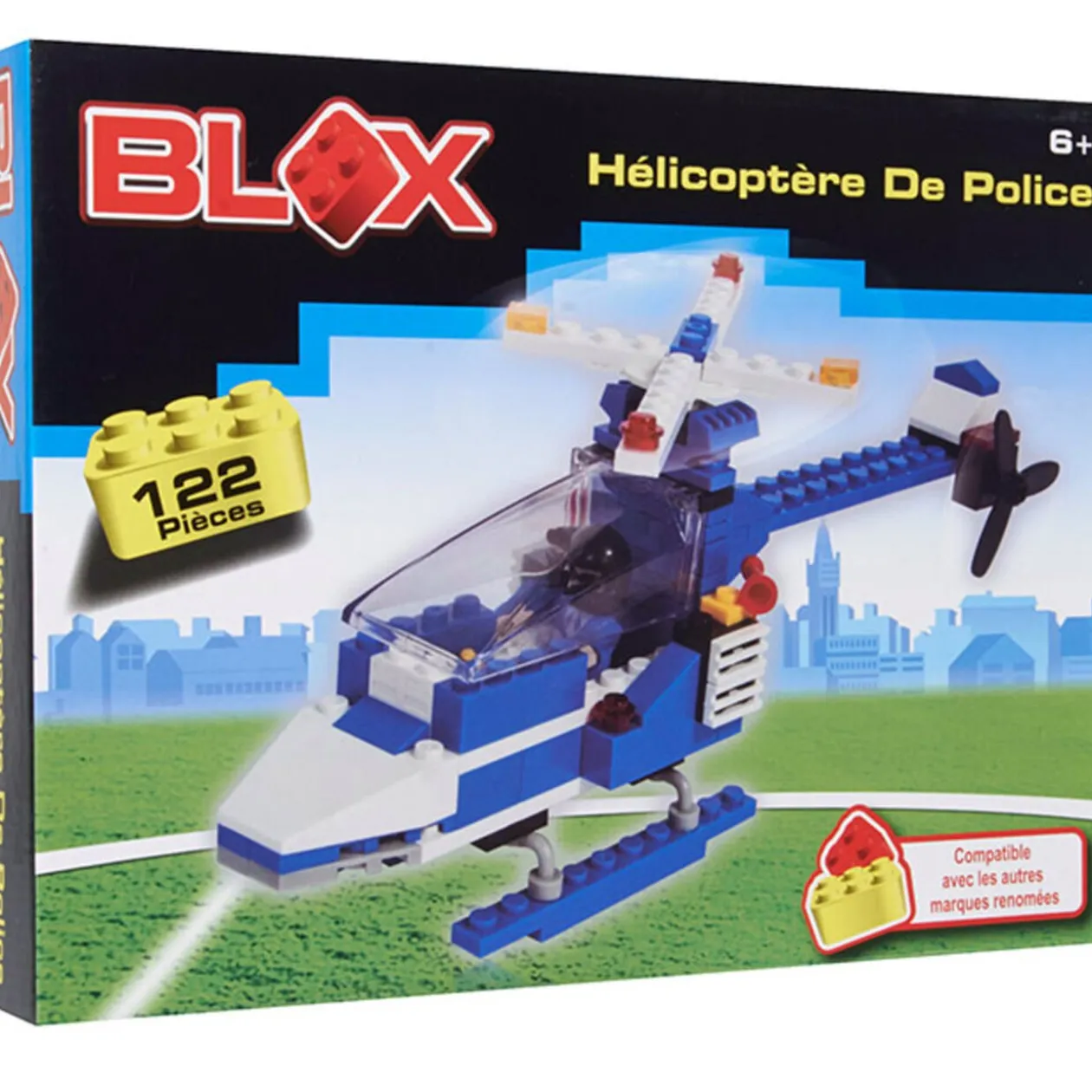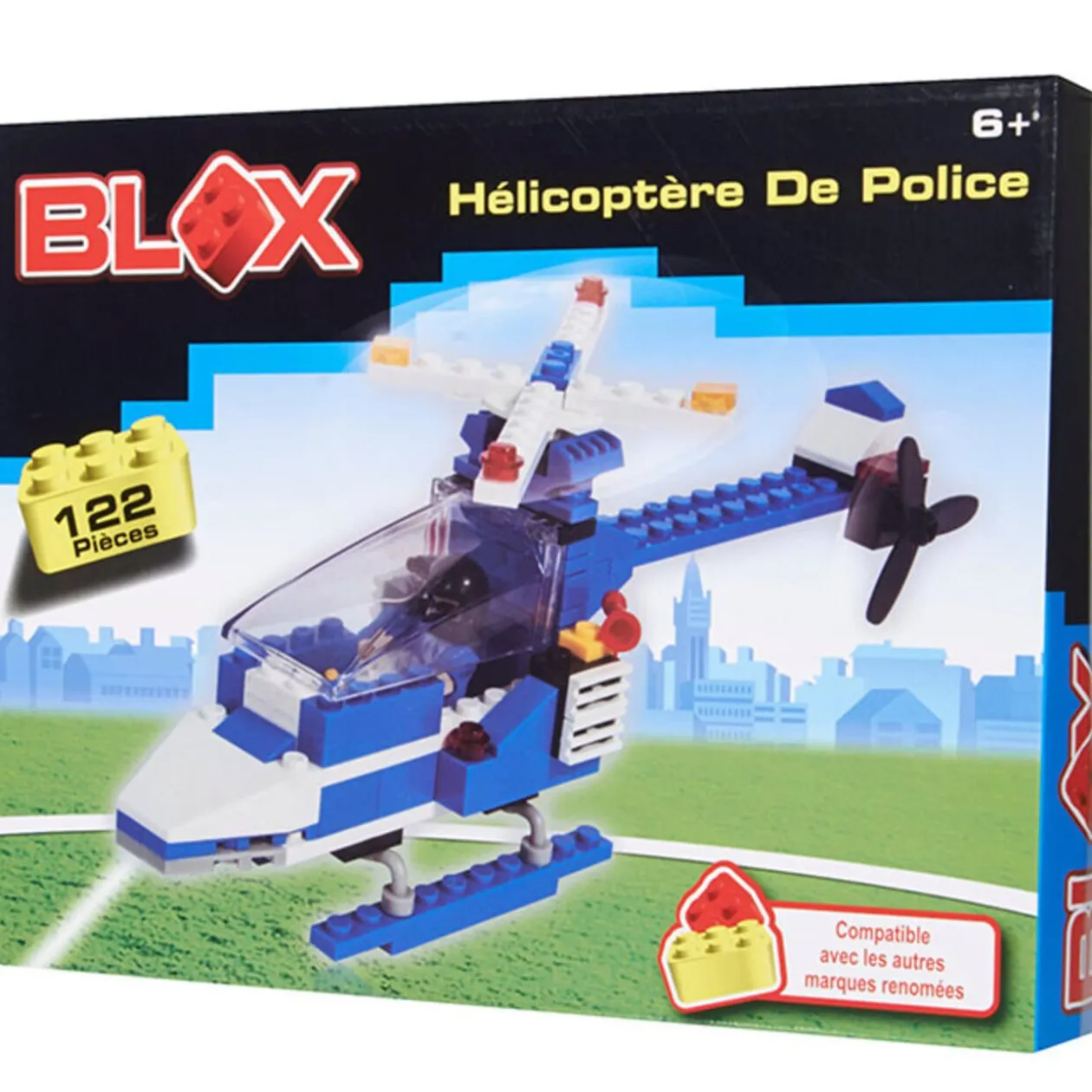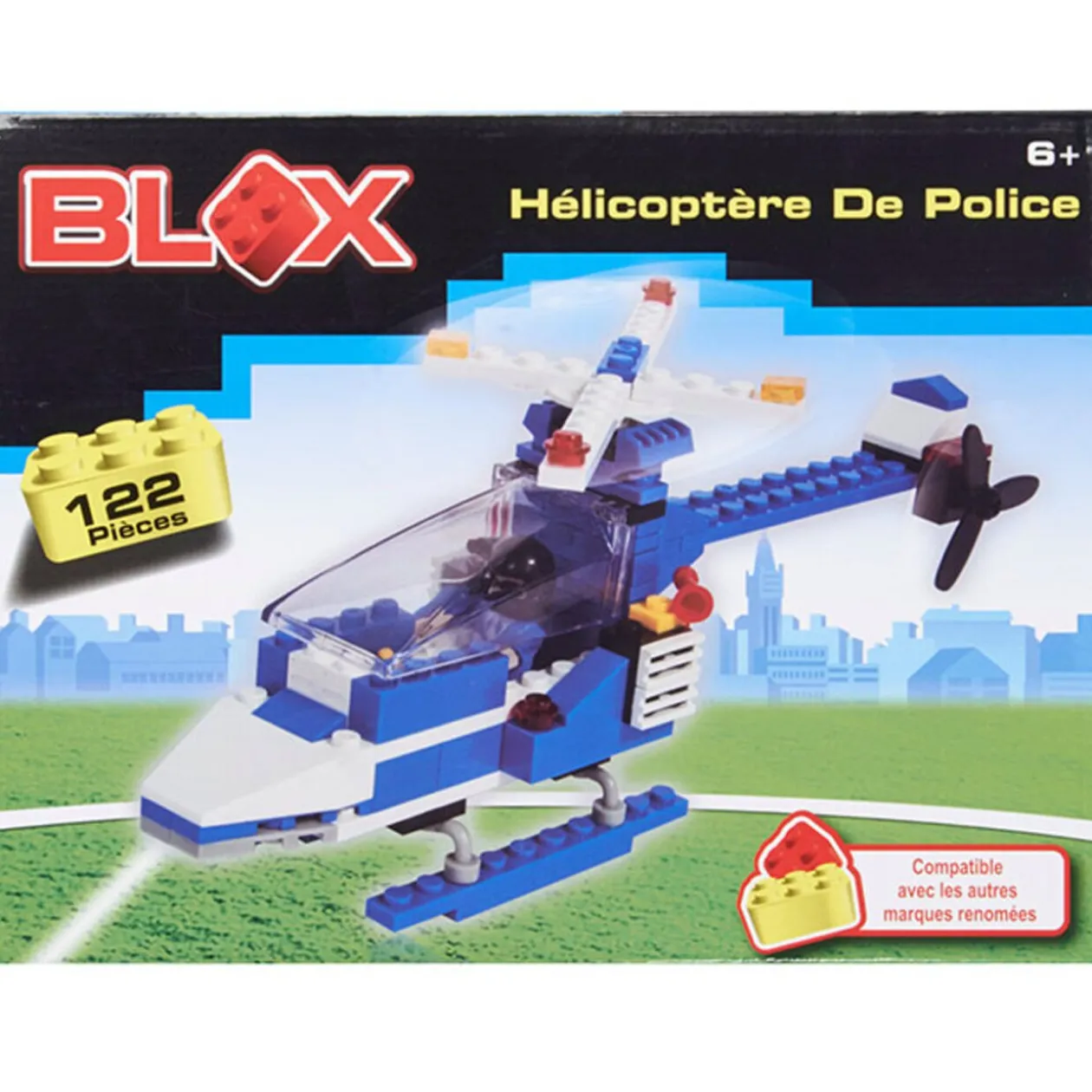Brique de construction. 3 modèles de véhicules : hélicoptère de police, camion de pompier, tank de l’armée. Chacun compte plus de 100 pièces.