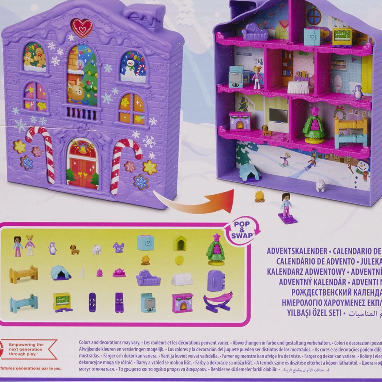 Calendrier de l’Avent design Polly Pocket et ses 24 surprises à découvrir chaque jour jusqu’à Noël.