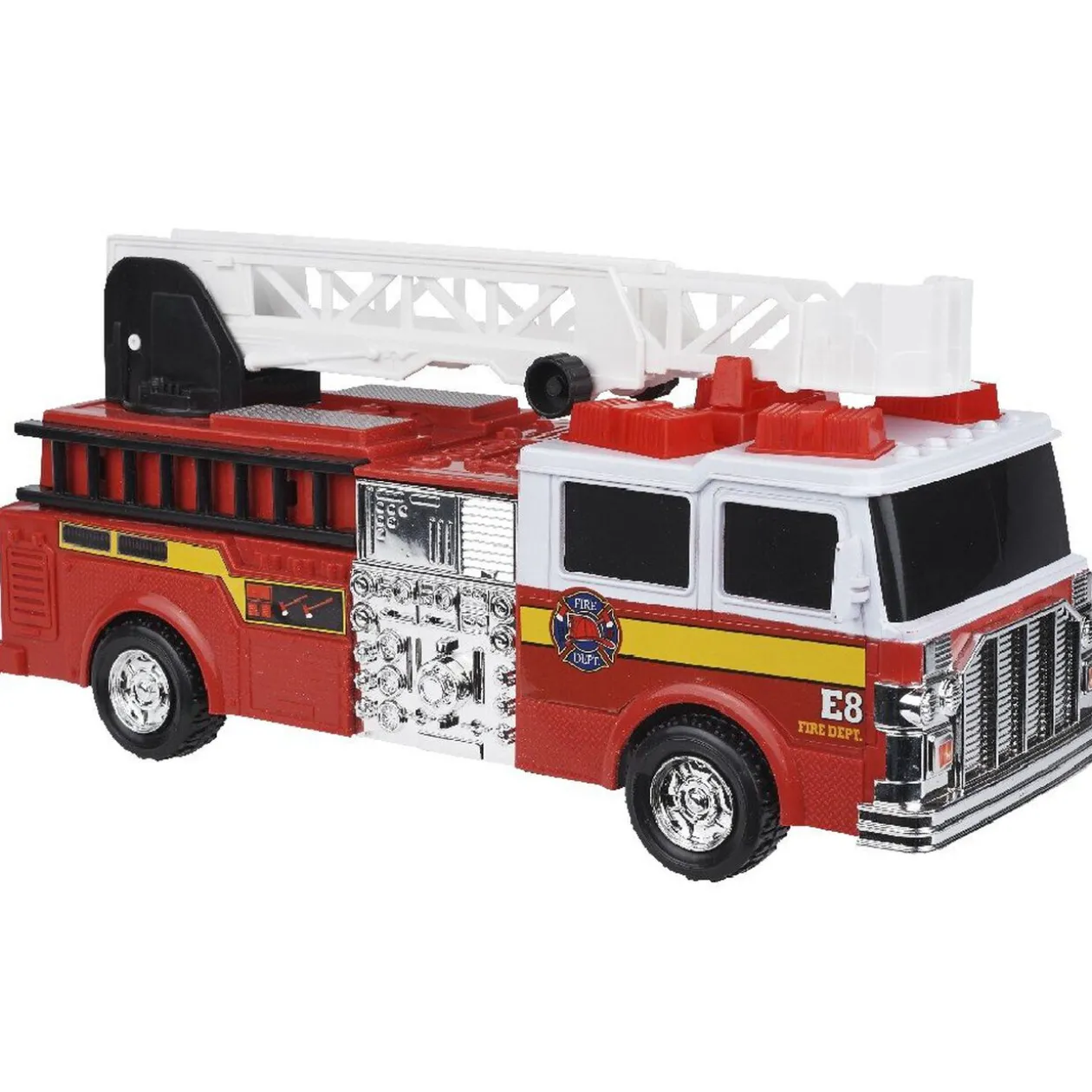 Camion de pompier, son et lumière, plastique. Dim : 32 x 15 x 12 cm.