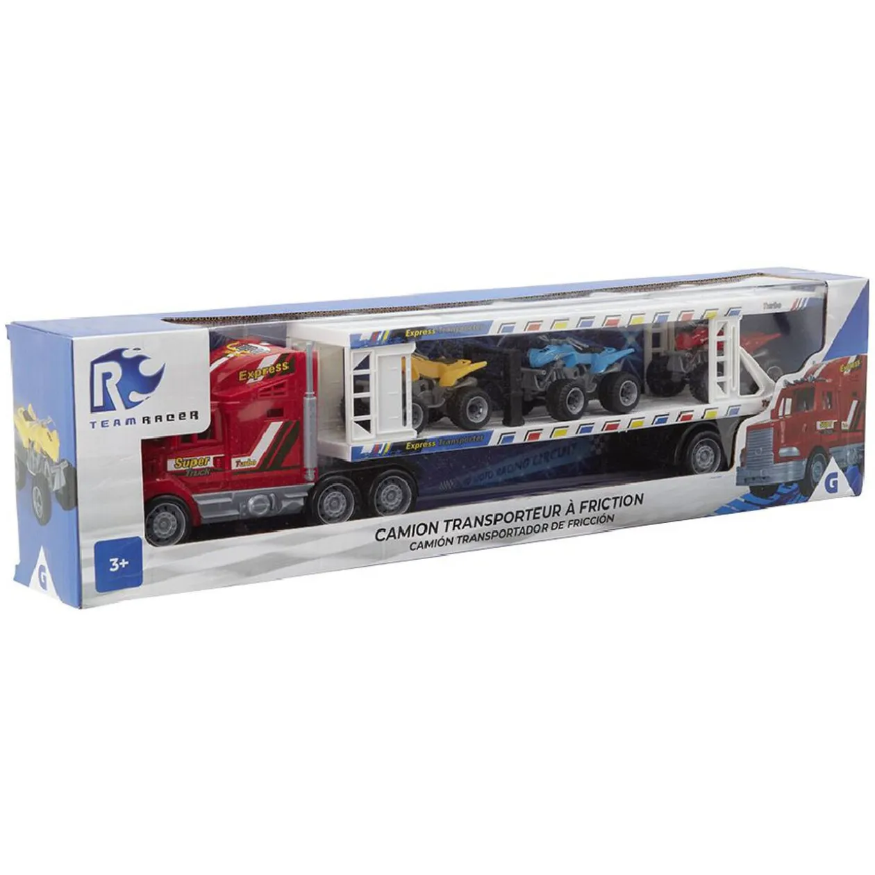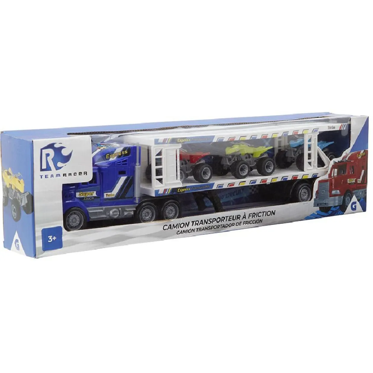 Camion transporteur de quads à friction. 3 quads inclus.
