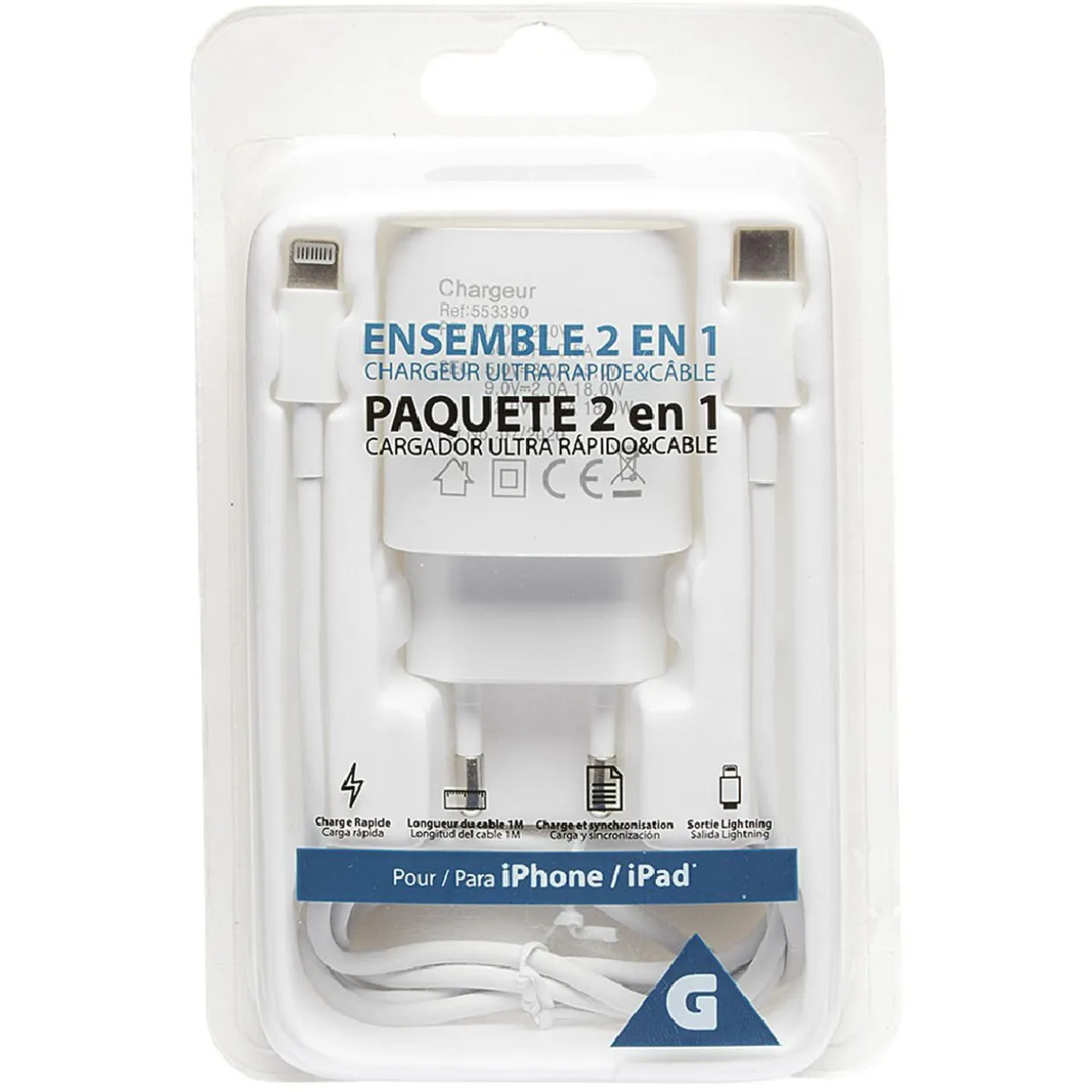Ensemble chargeur USB-C et câble lightning pour Iphone et Ipad.