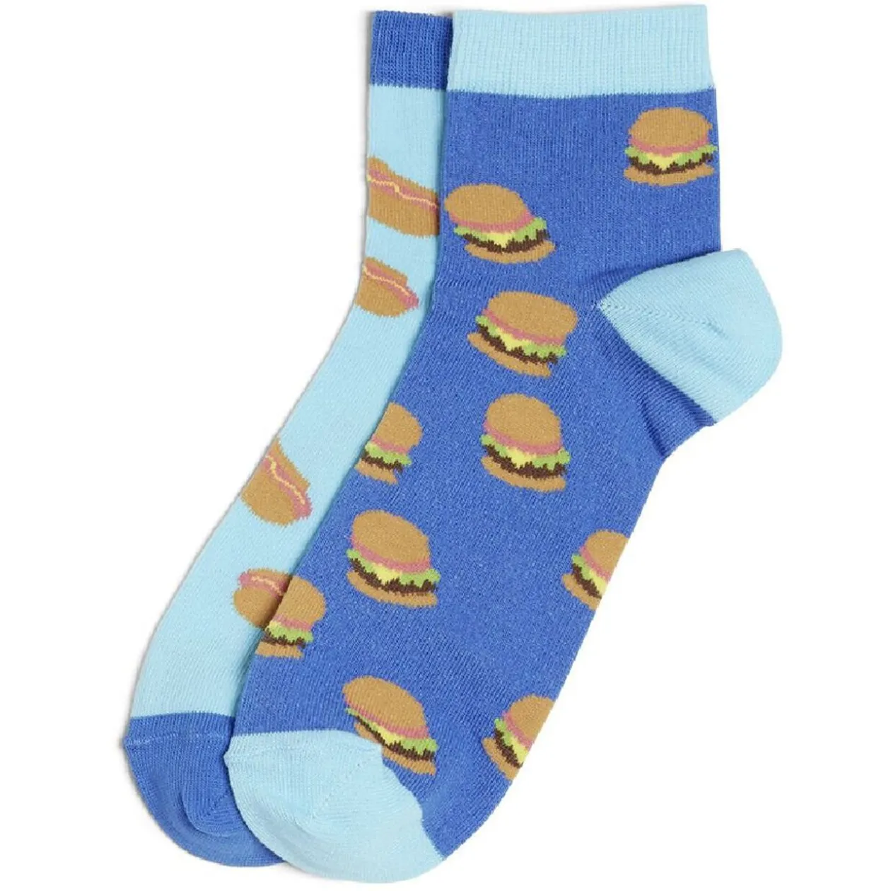 Paire de chaussettes dépareillées à motif burger pour l’une et hot dog pour l’autre. Colorées et agréables à porter, ces chaussettes basses apporteront un style unique et original à vos pieds !
