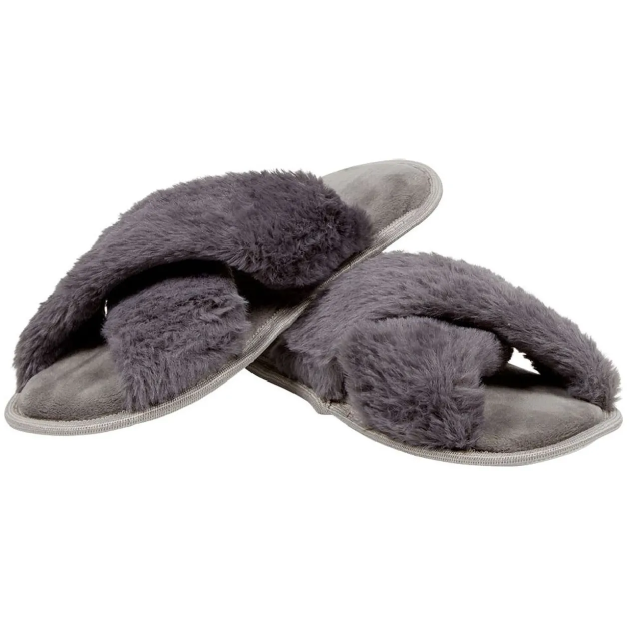 Paire de chaussons à brides croisées gris.