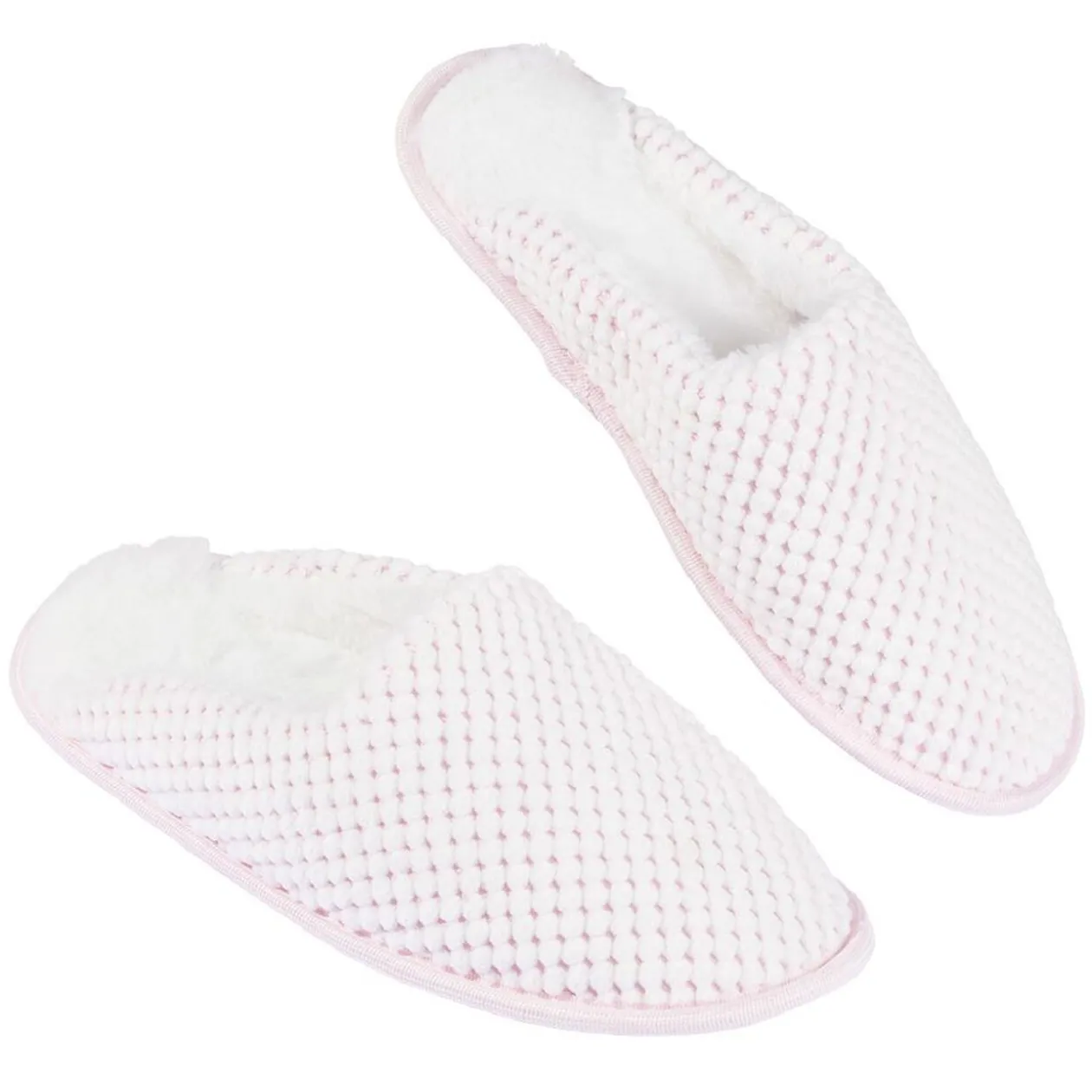 Paire de chaussons mules de couleur rose avec intérieur blanc pour adulte.