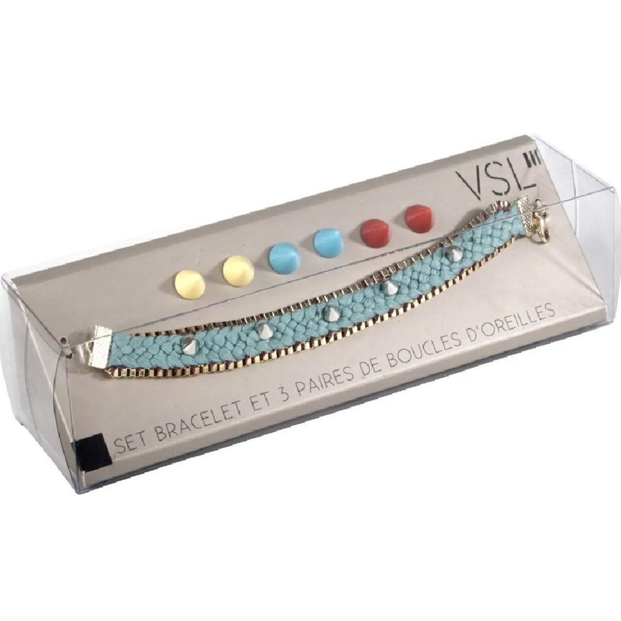 Coffret bracelet chaîne + 3 paires de boucles d’oreilles