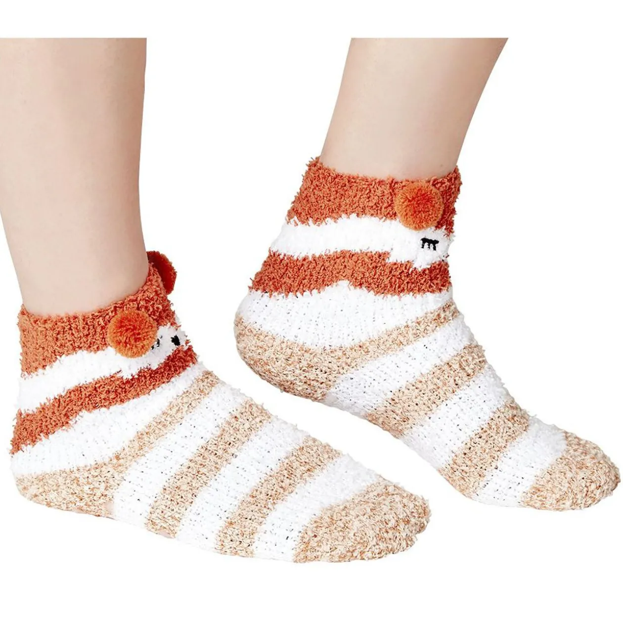 Laissez-vous séduire par ce joli coffret avec chaussettes en maille doudou et son craquant motif animal rayé marron et beige.