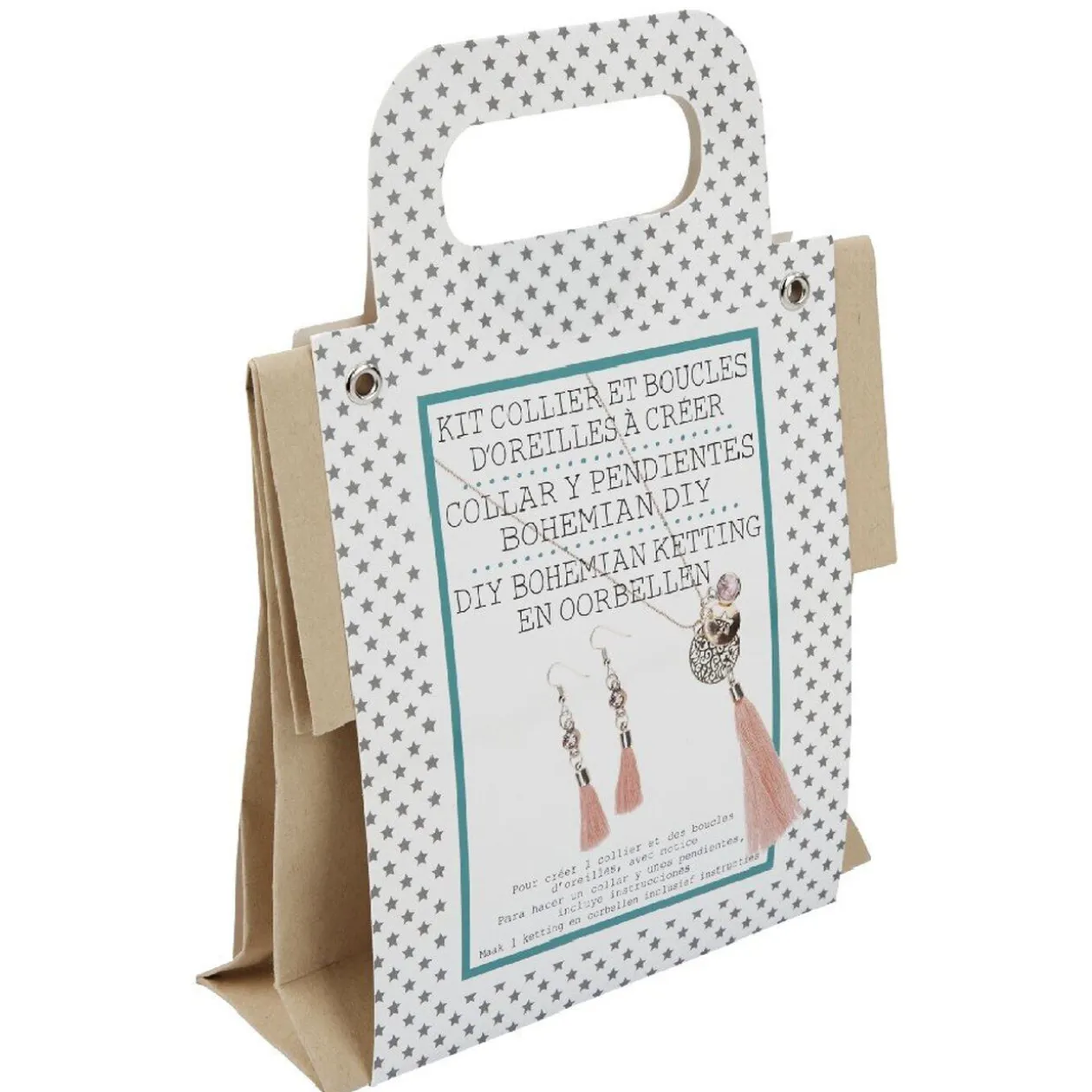 Set de 1 collier et 1 paire de boucles d’oreilles roses à confectionner.