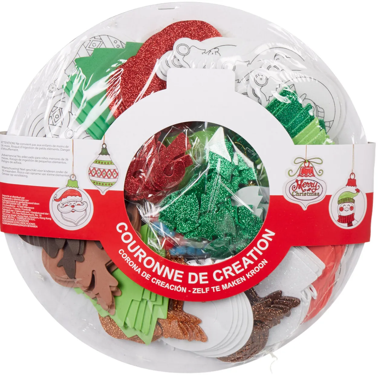 Confectionnez votre propre couronne de Noël et mettez ainsi votre entrée à votre image pour accueillir les invités. Amusez-vous en famille en choisissant parmi les nombreuses décorations de ce kit.