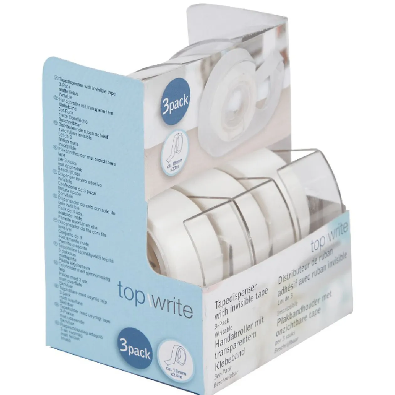 Lot de 3 dévidoirs avec leur ruban adhésif transparents.
