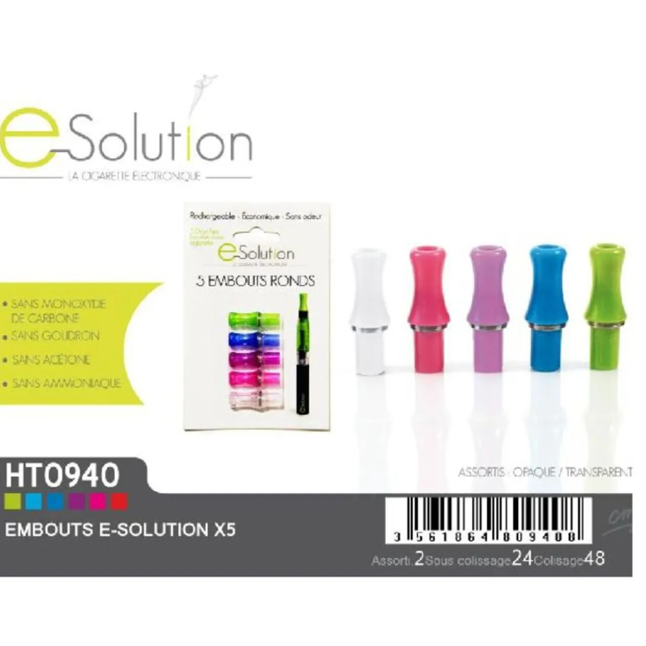 5 embouts ronds pour cigarettes électronique e-Solution, L. 3 cm.Pour remplacer et personnaliser l’embout de la cigarettes électonique :