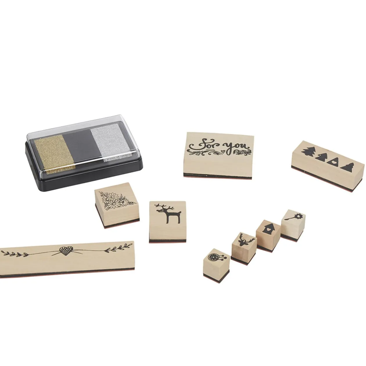 Décorez les fêtes de fin d’année à votre façon grâce à ce lot de 9 tampons motif renne, sapin, attrape-rêves… Une authentique décoration à afficher en noir, en doré ou en argenté avec l’encreur 3 couleurs.