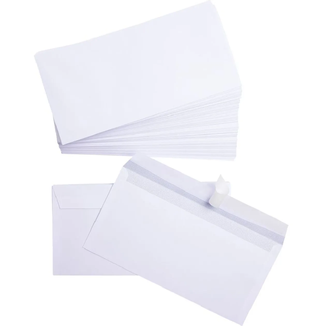 Lot de 100 enveloppes autoadhésives blanches.