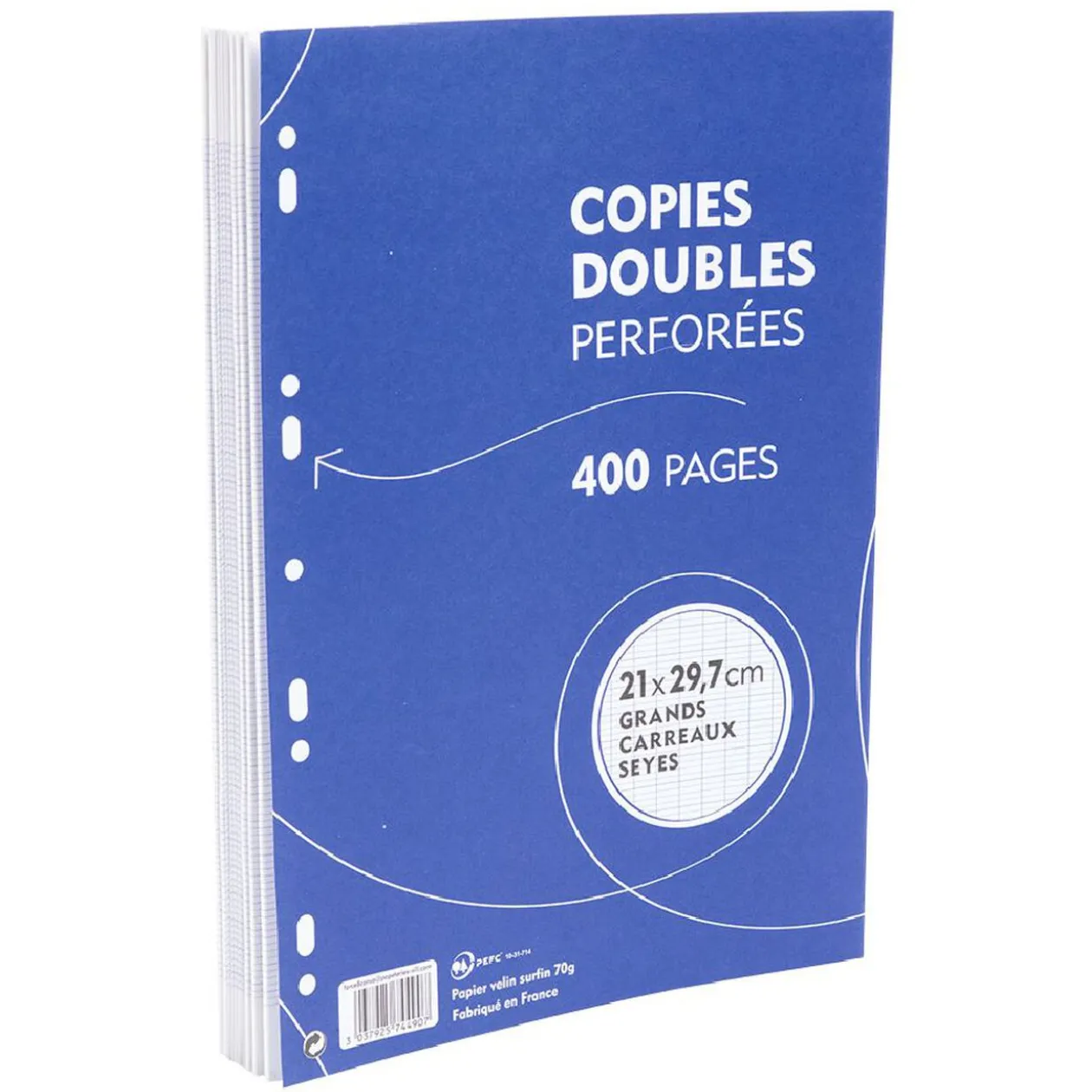 Lot de 400 feuilles copies doubles perforées à grands carreaux.