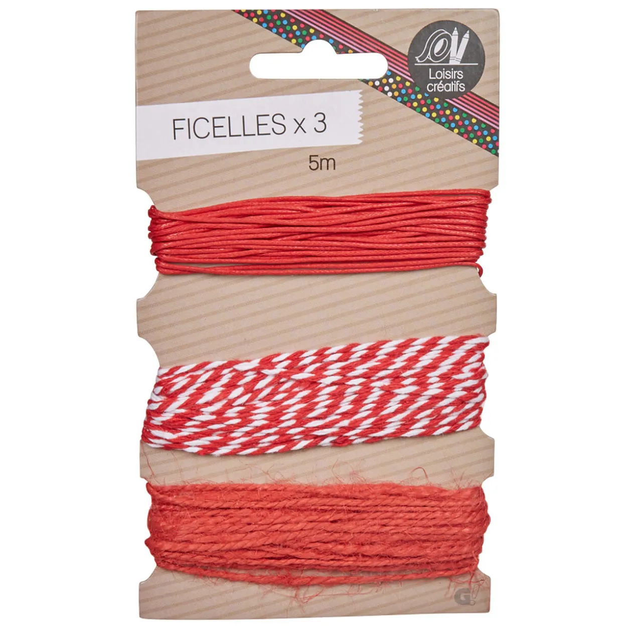 Grâce à ces 3 ficelles de 5 m rouges et blanches, créez de la décoration vintage ou traditionnelle et coupez-les pour suspendre vos boules de Noël.