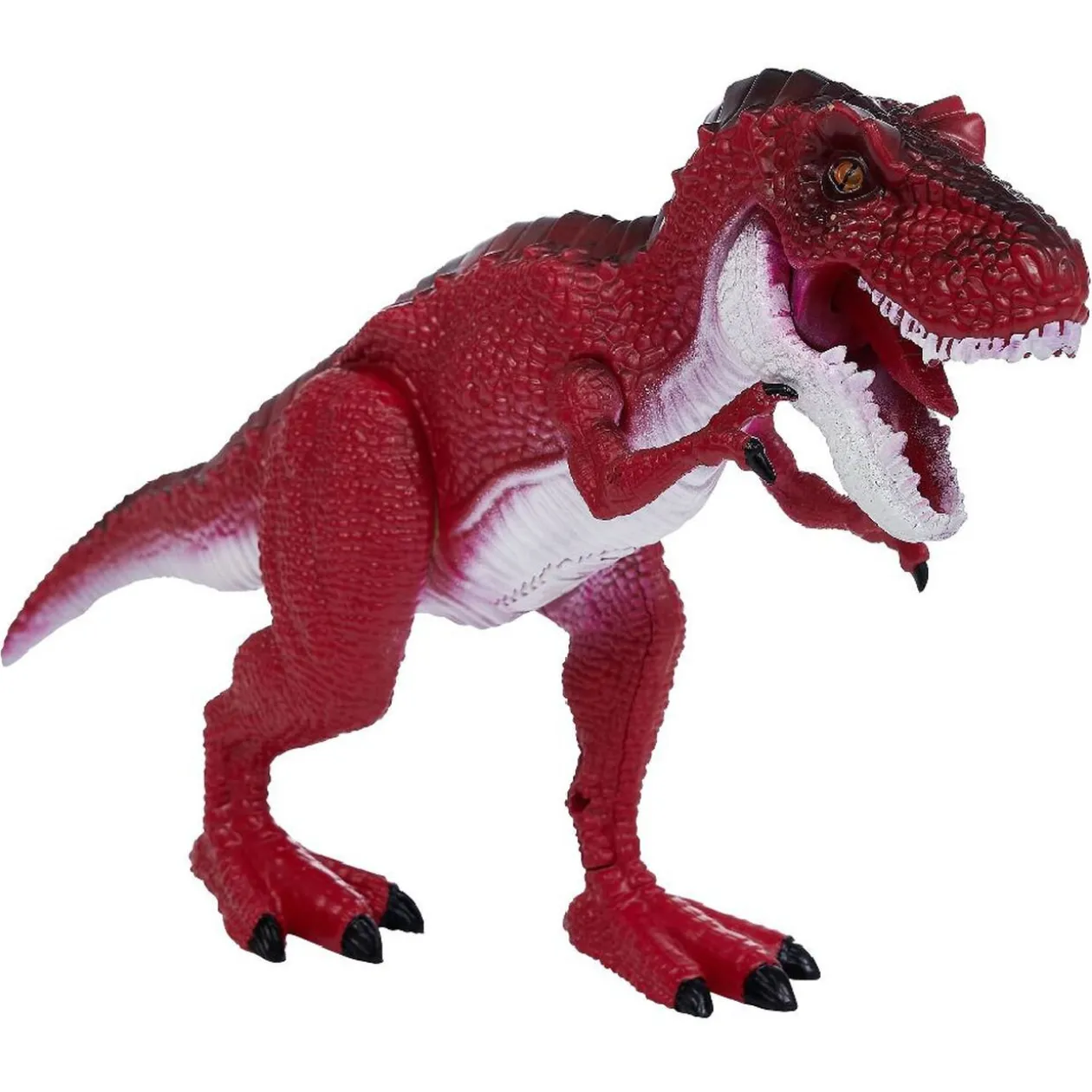 Figurine de dinosaure rouge qui émet du son et de la lumière.