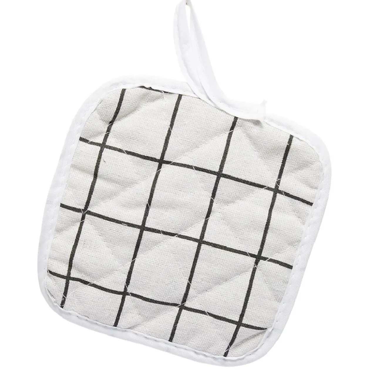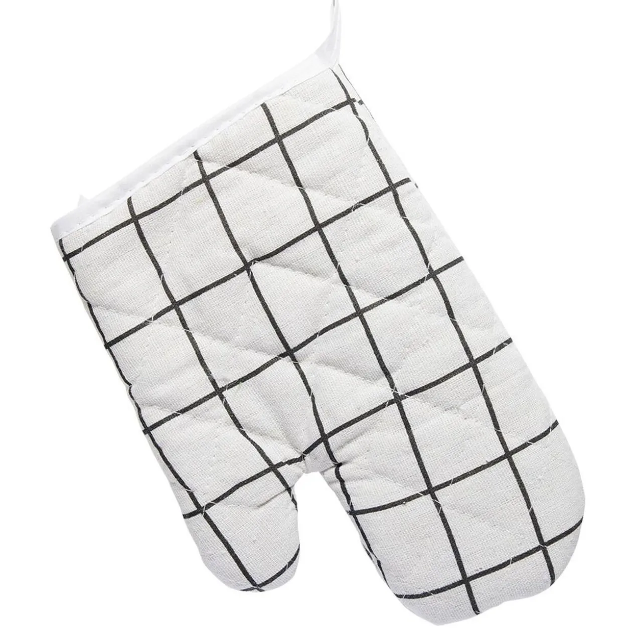 Gant de cuisine blanc quadrillé noir avec manique assortie, le lot idéal pour sortir vos plats chauds sans vous brûler.