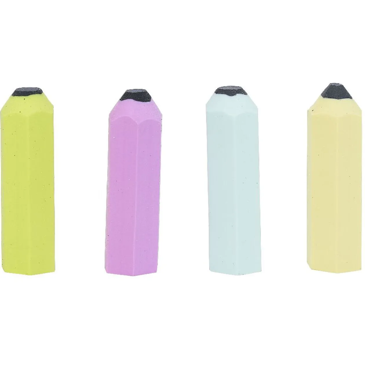 Lot de 4 gommes 3D en forme de crayon. Original et coloré, idéal pour la trousse scolaire et la maison.
