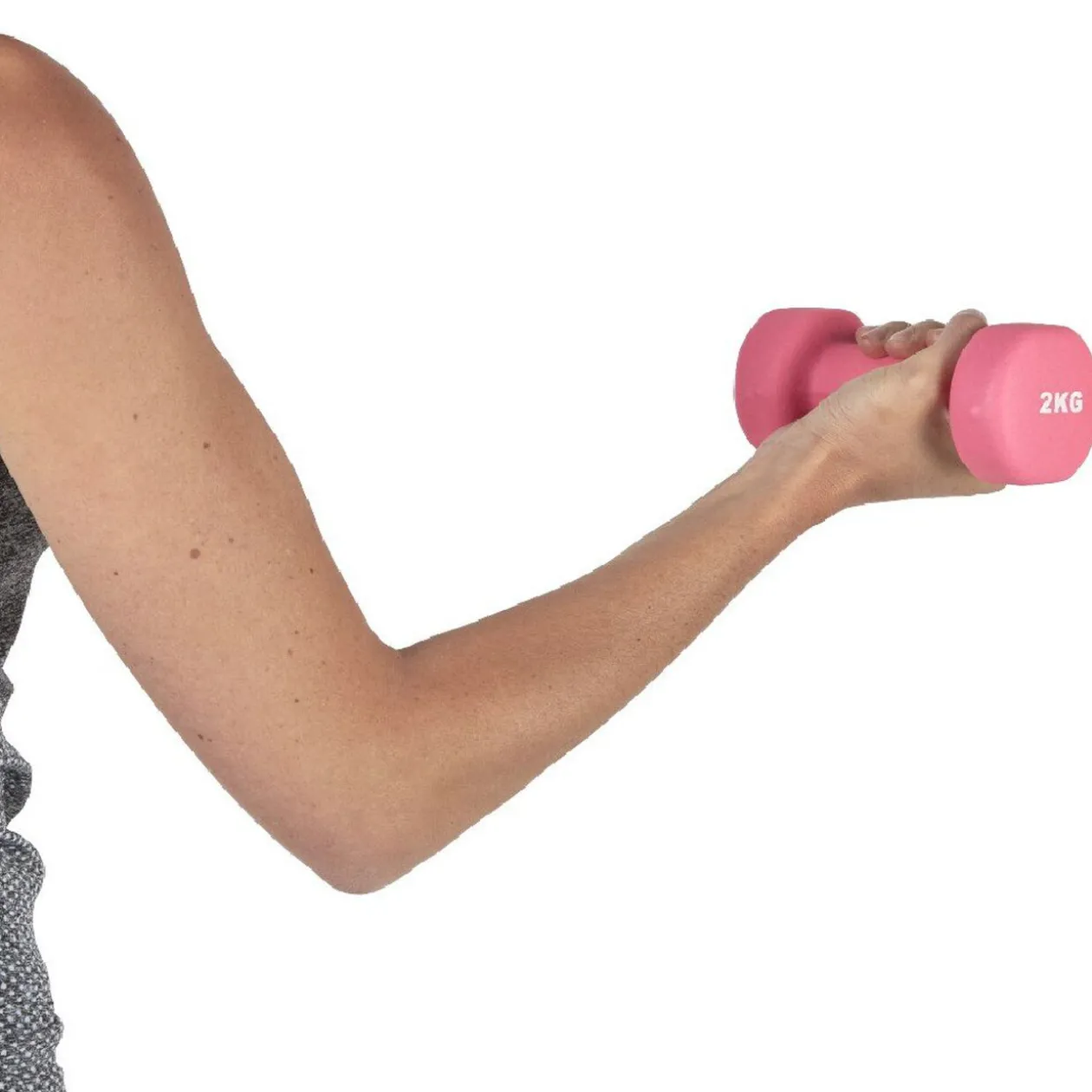 Ce produit existe en 2 couleurs: gris/rose, couleurs aléatoires selon disponibilité en magasin. – Diamètre Ø5x L 13 cm. – Matière: métal + polypropylène. Existe aussi en haltères de 1 kg.