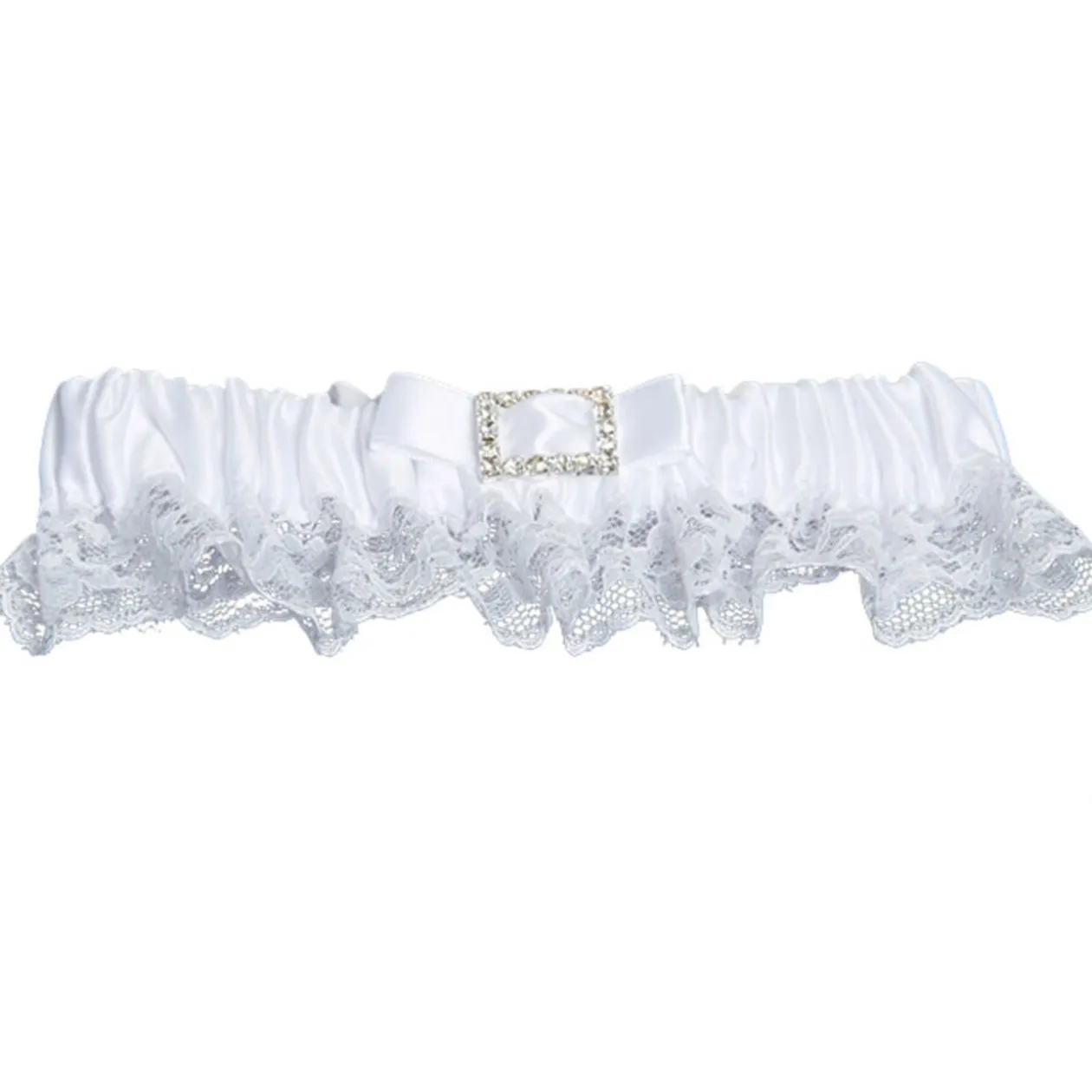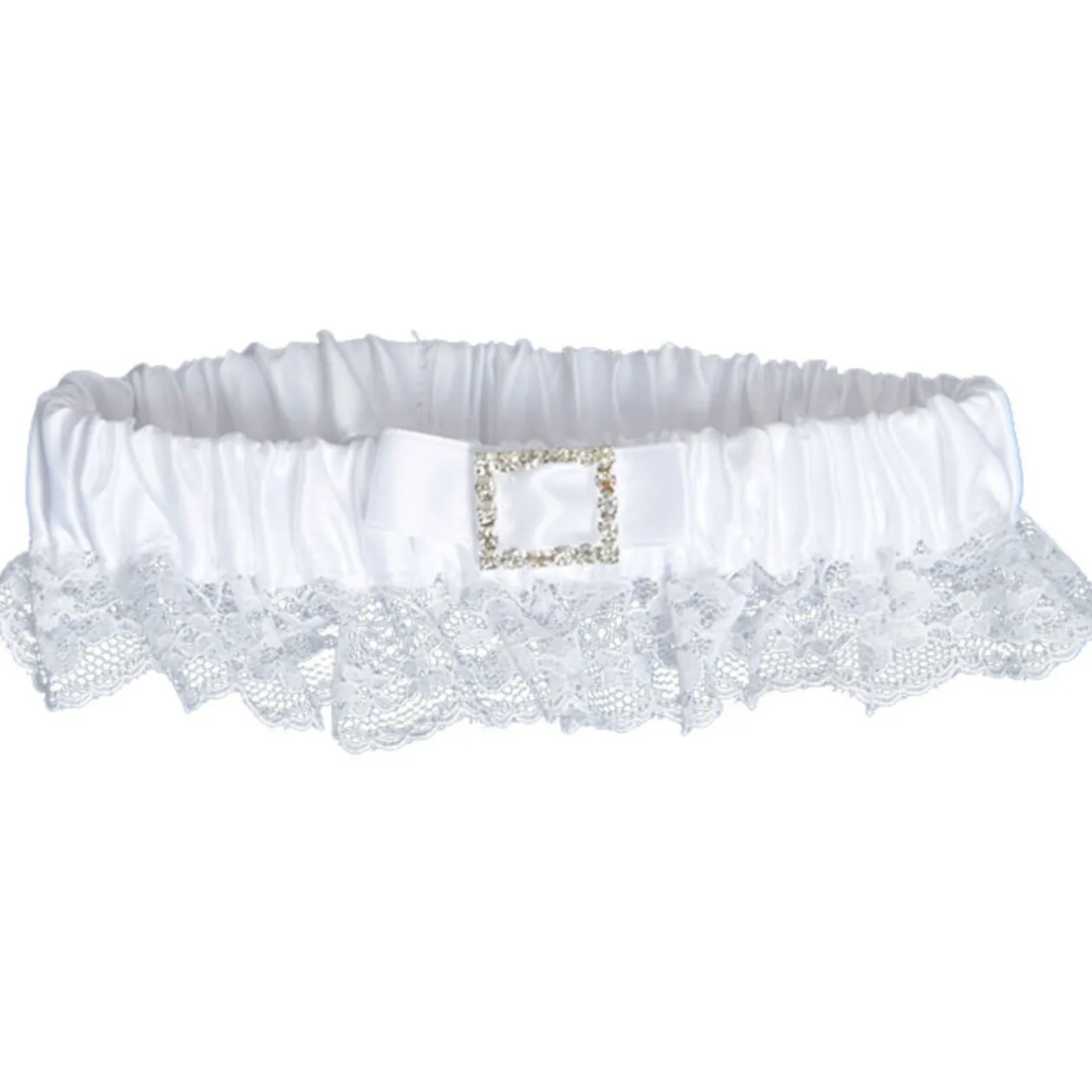 Jarretière blanche à dentelle avec strass, ø 8 cm, polyester.