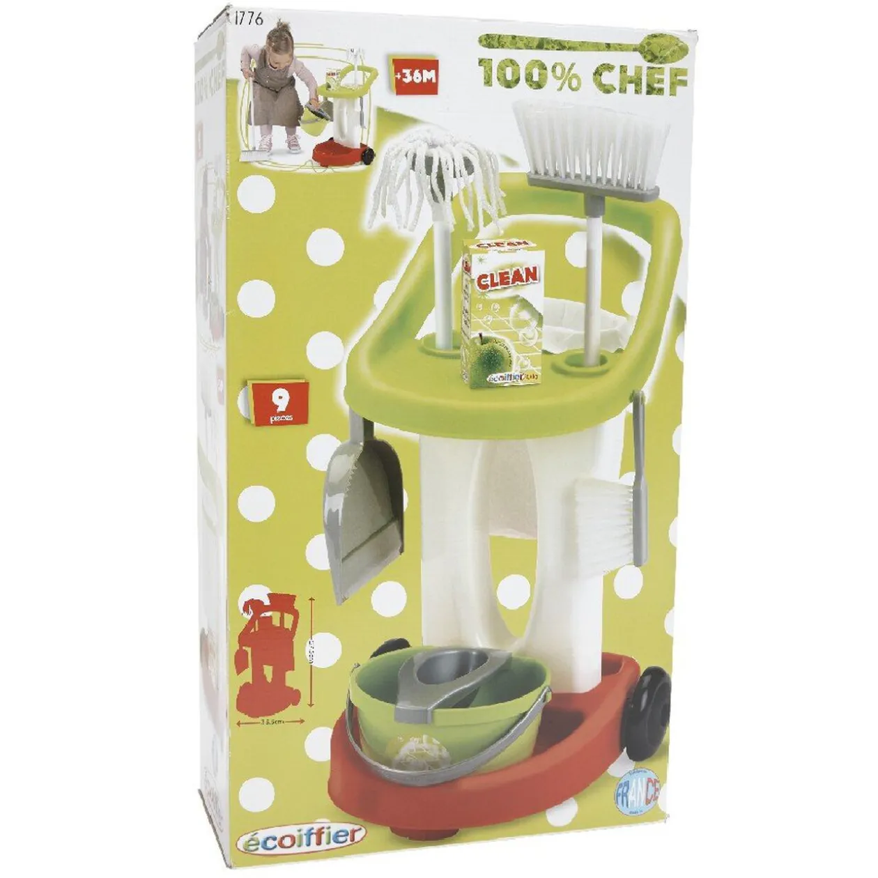 Ménagère pour enfant pour nettoyer toute la maison! Votre petit bout pourra enfin s’amuser à utiliser le seau, le balai, la serpillère, la pelle et la balayette comme les grands!
