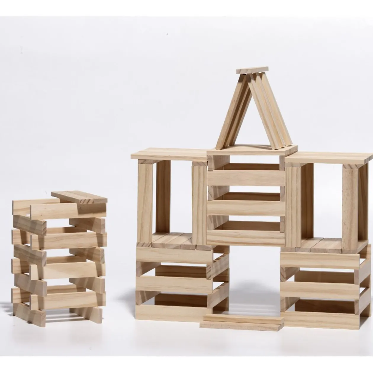 Jeu de construction en bois 100 pièces, dès 3 ans.