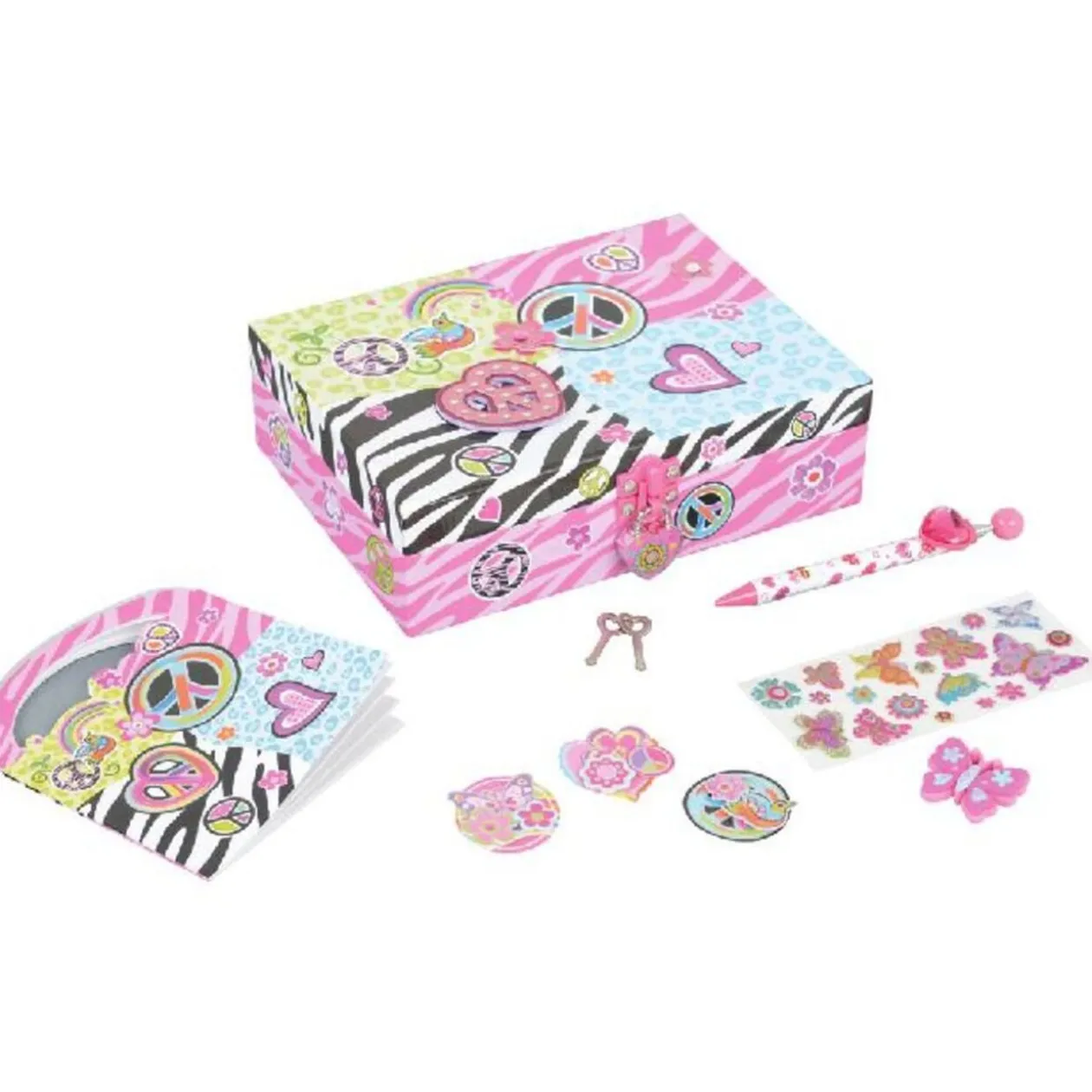 Mallette avec cadenas comprenant 1 carnet, 1 stylo, des stickers… Dim. 21.5x16x6 cm, dès 3 ans.