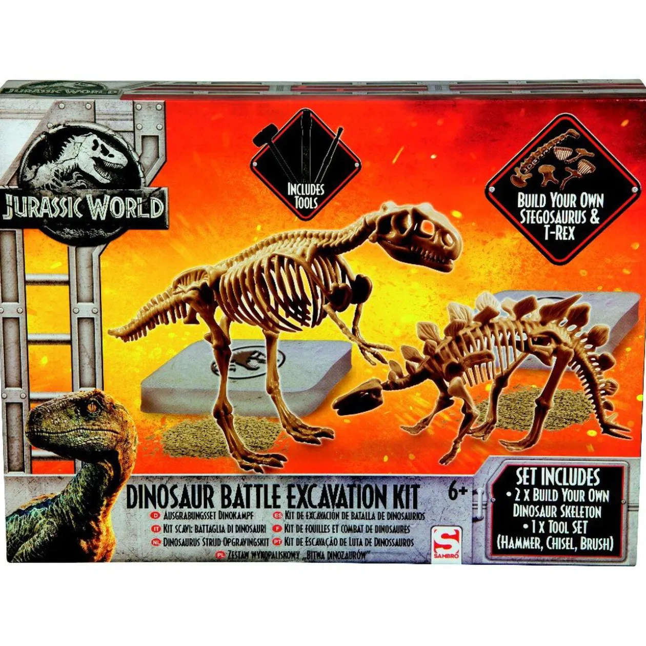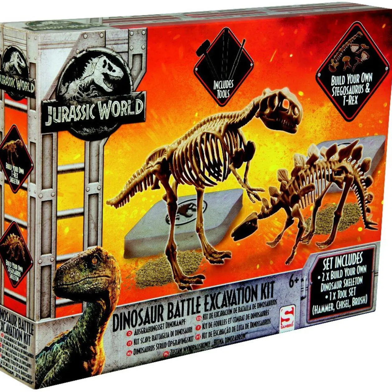 Joue au paléontologue avec ce kit d’excavation inspiré du film Jurassic World. Idéal pour les fans de dinosaures, il comprend les outils nécessaires pour creuser le squelette d’un T-Rex et d’un stégosaure!