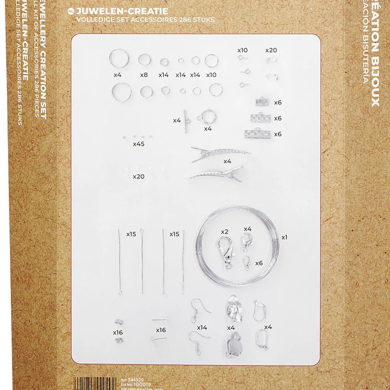 Créer vos propres bracelets, colliers, broches ou boucles d’oreilles grâce à ce kit composé de diffférentes pièces de bijouterie en aluminium argenté.