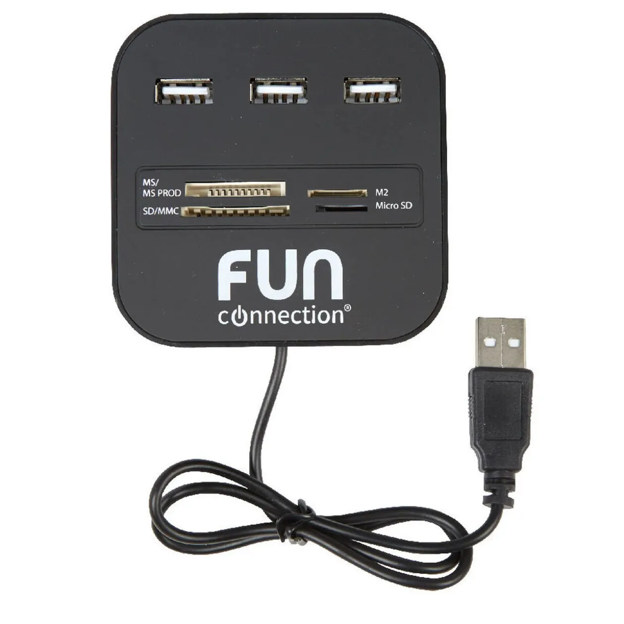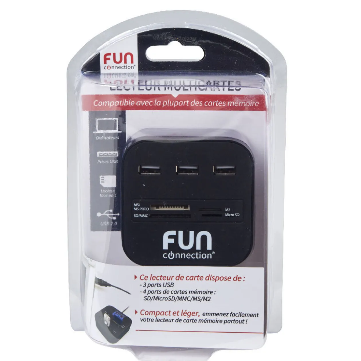 Lecteur de cartes SD et USB, Compact, il comprend 3 ports USB et 4 ports de cartes mémoires :SD / micro SD / MMC / MS / M2.
