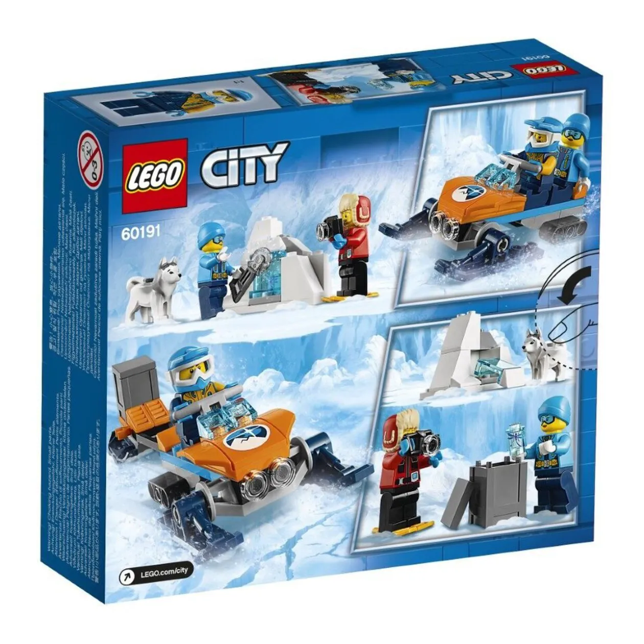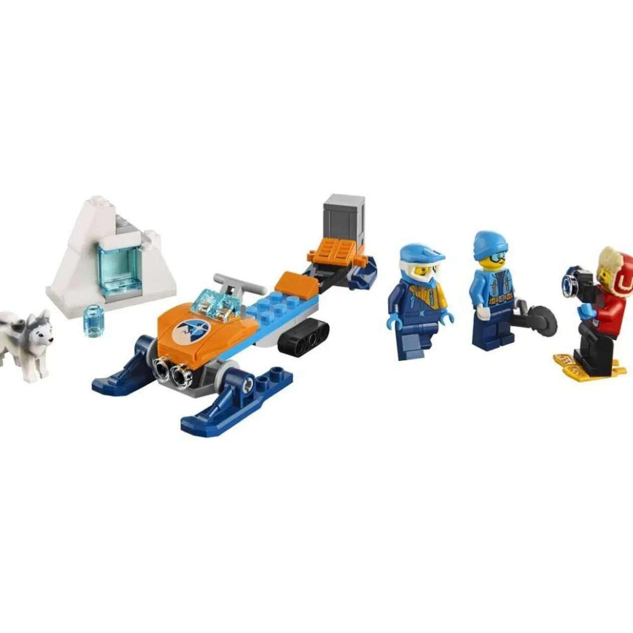 Embarque pour une aventure palpitante au coeur de l’Arctique ! Rejoins le site de fouille sur ta motoneige et utilise la scie pour extraire le fossile caché dans la glace. N’oublie pas de prendre des photos, et ramène-le au camp. Mais il y a encore bien des merveilles à découvrir, alors raccroche la remorque de ta motoneige, rassemble ton équipe et dévale les landes gelées accompagné de ton fidèle husky ! Ce pack LEGO City est adapté aux enfants de 5 à 12 ans et contient : 1 photographe, 1 conducteur de motoneige, 1 explorateur, 1 husky, 1 motoneige, 1 bloc de glace et divers accessoires.
