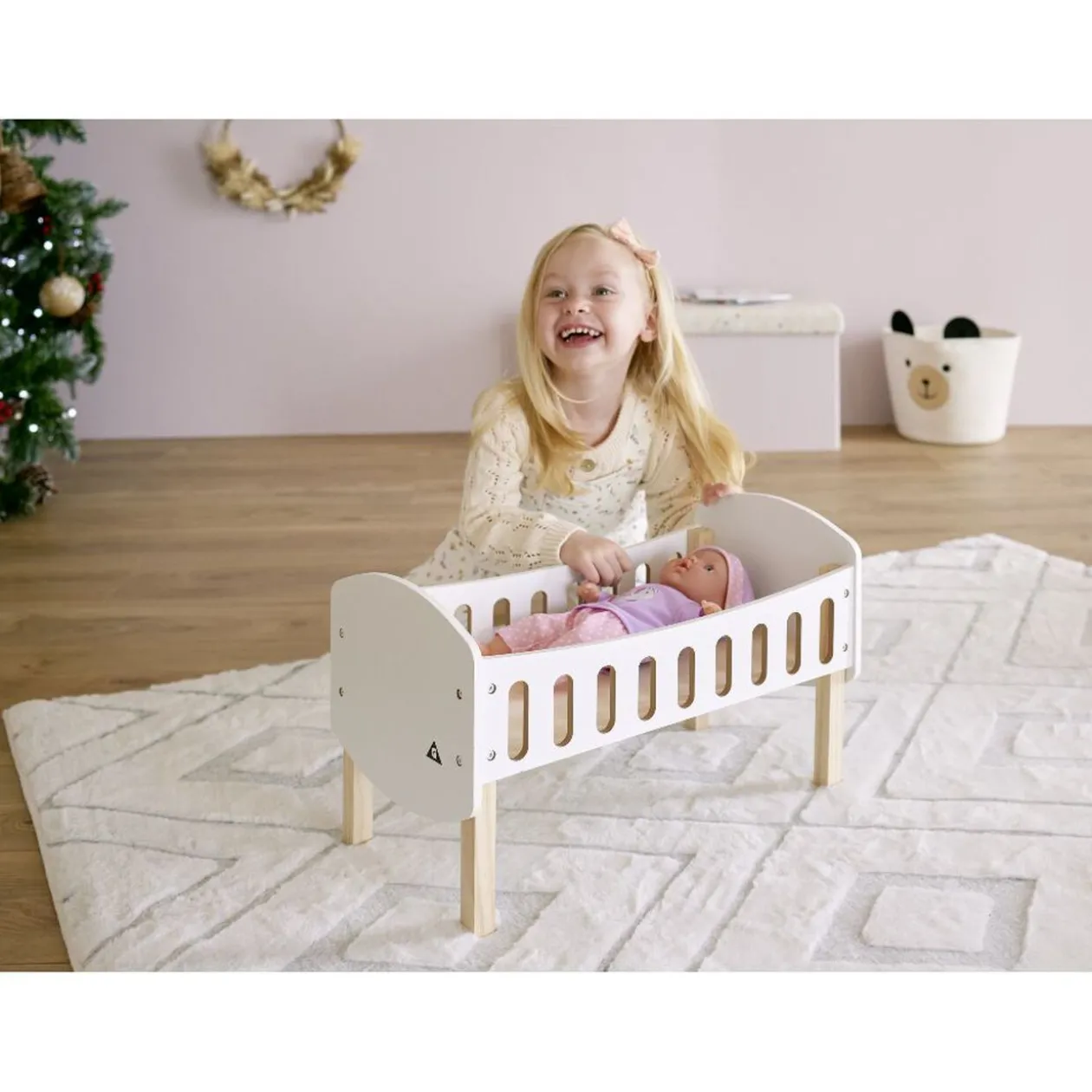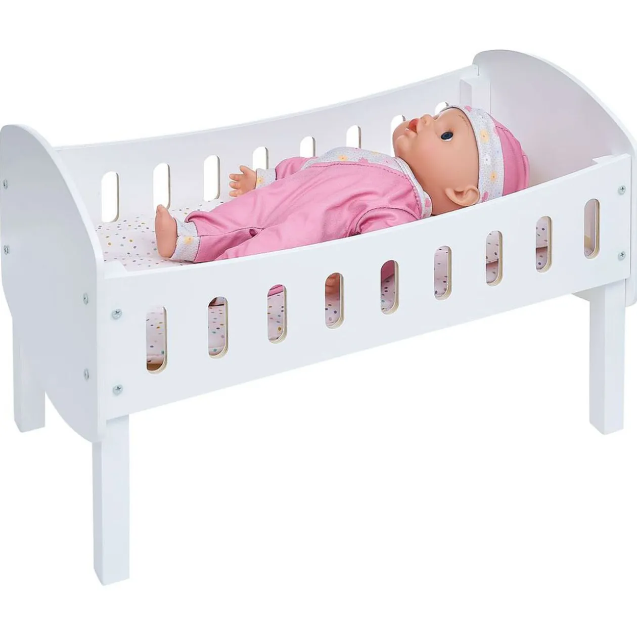 Votre enfant pourra s’occuper de son poupon comme d’un vrai bébé avec ce lit en bois blanc !