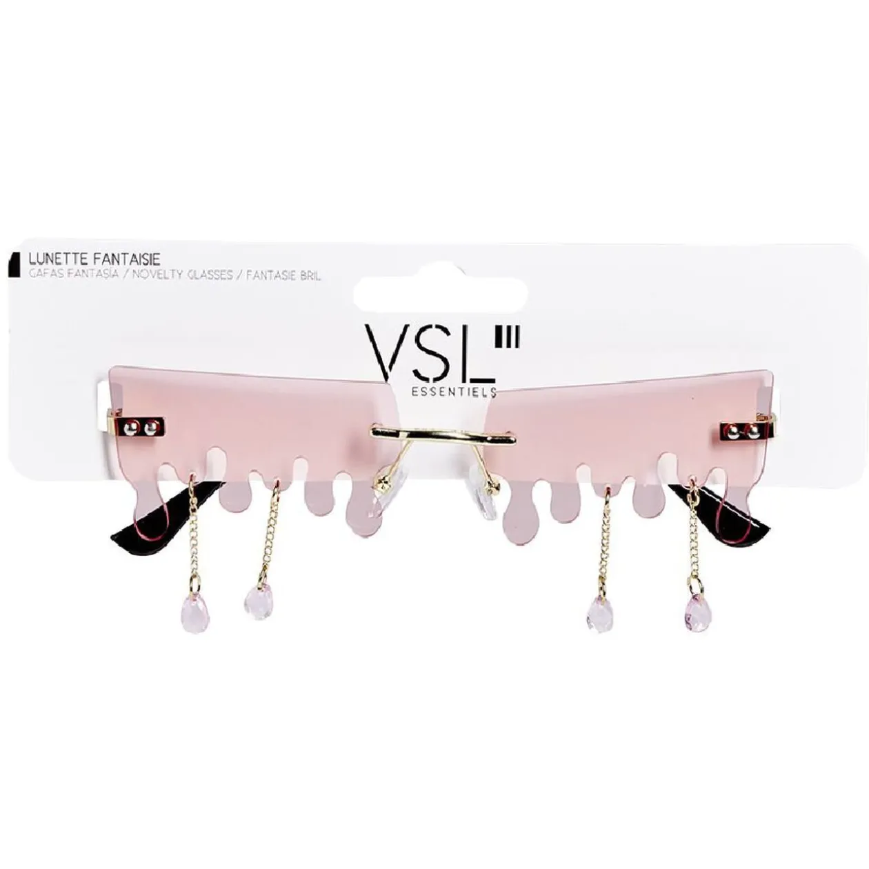 Osez la fantaisie avec ces lunettes rose au design original effet dégoulinant, ornées de bijoux pendants.