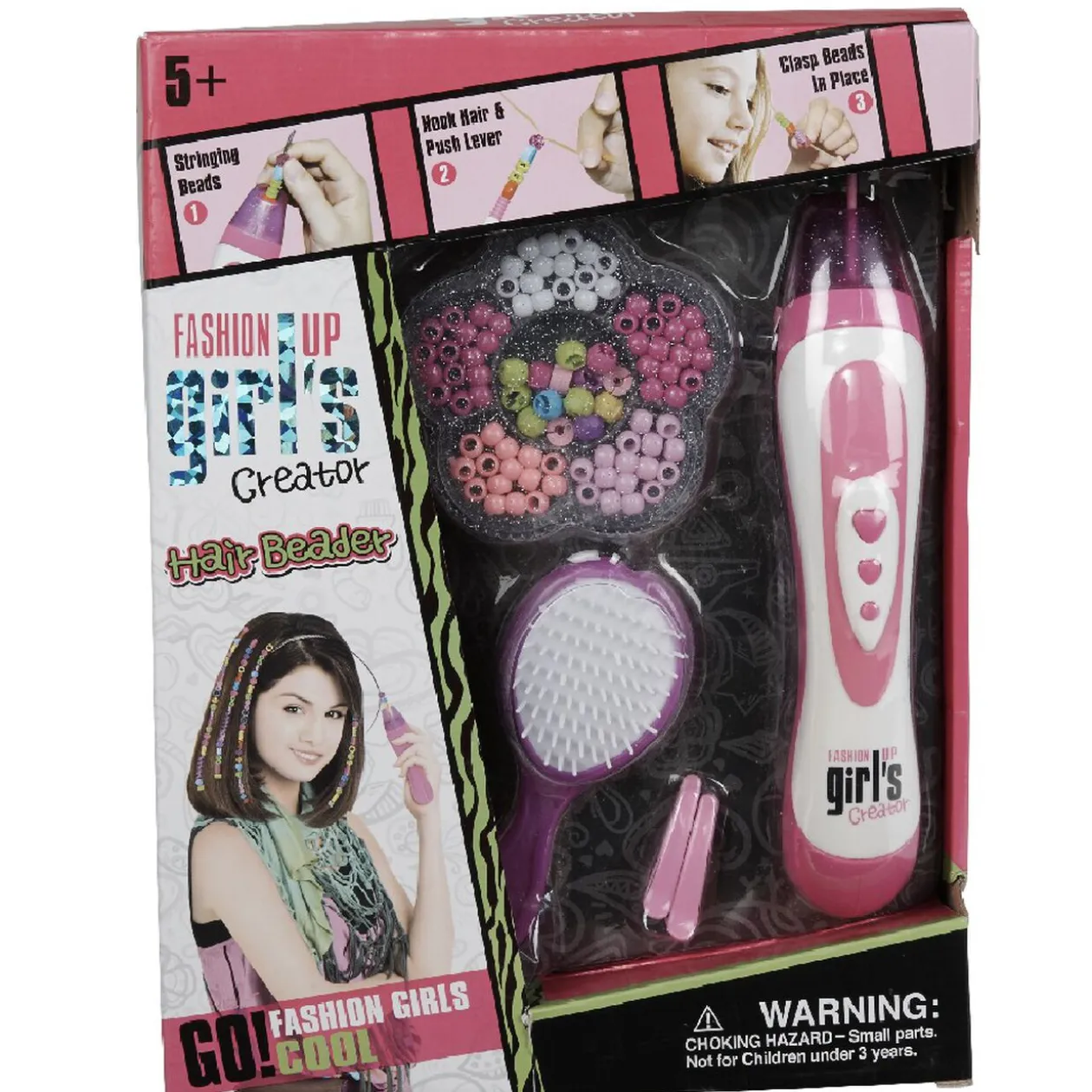 Fais-toi de magnifiques tresses perlées grâce à cette machine, sa brosse rose et ses nombreuses perles. 1 patron pré-découpé, 1 aiguille, 2 plumes, 2 barrettes, 3 pelotes de laine