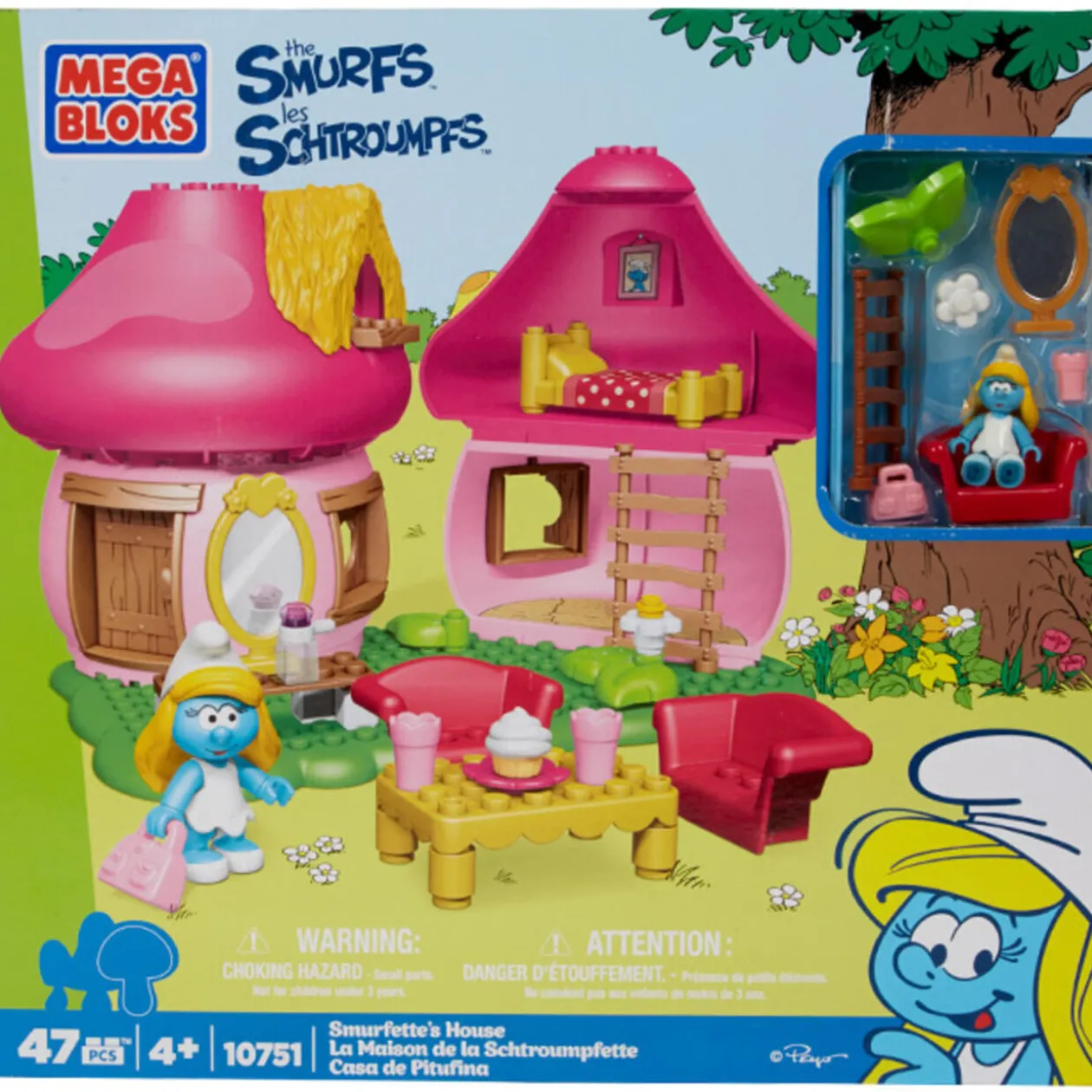 La maison de la Schtroumpfette 47 pièces, h.12, ø8 cm, plastique, divers accessoires inclus. Dès 4 ans.