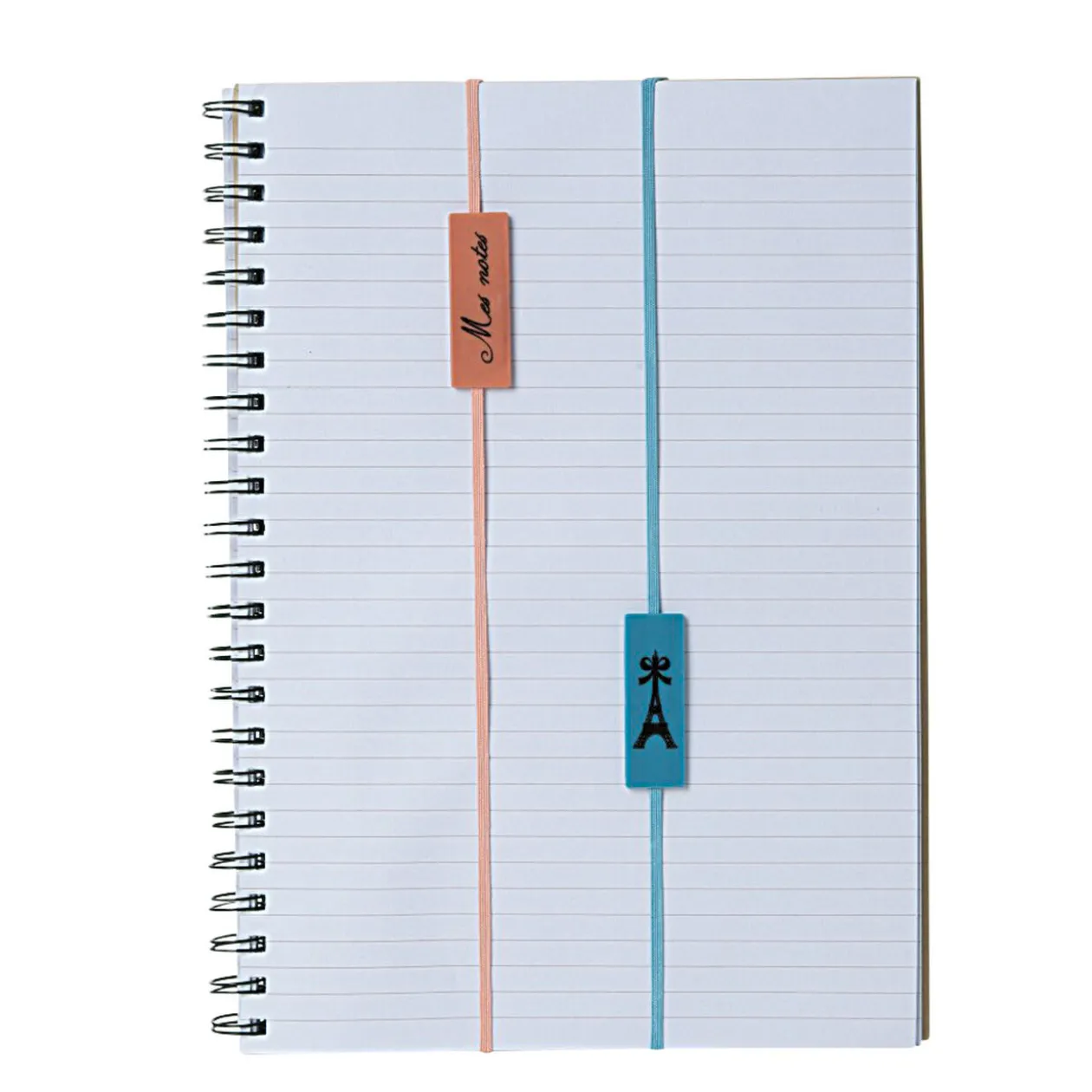 Lot de 2 marque-pages élastiques de couleur rose et bleu.