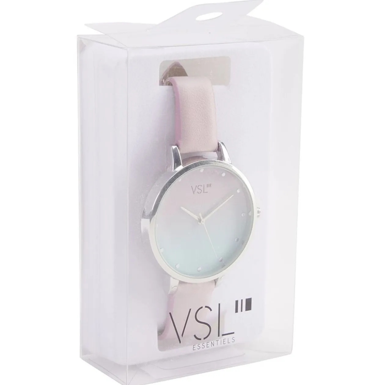 Montre avec bracelet en plastique rose pastel et cadran rond déco tye & die.