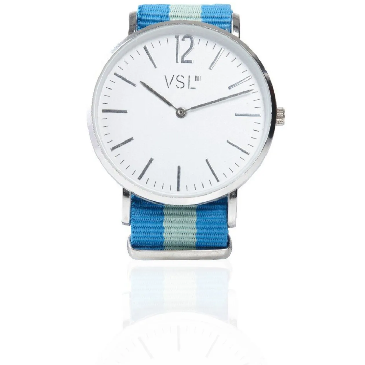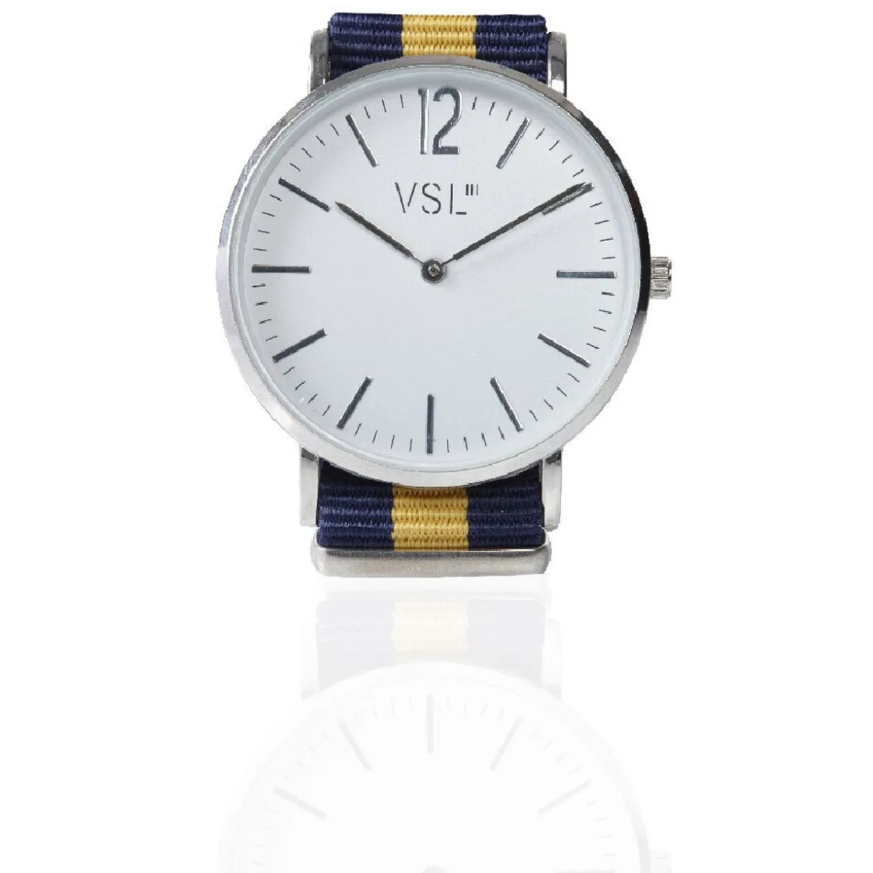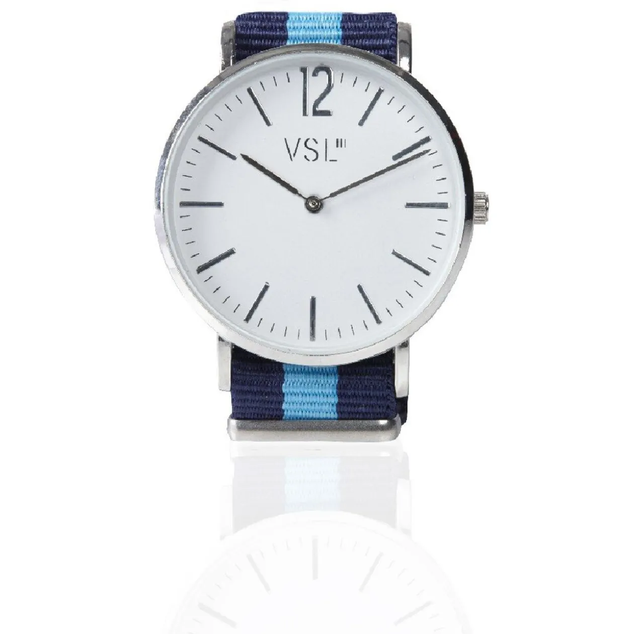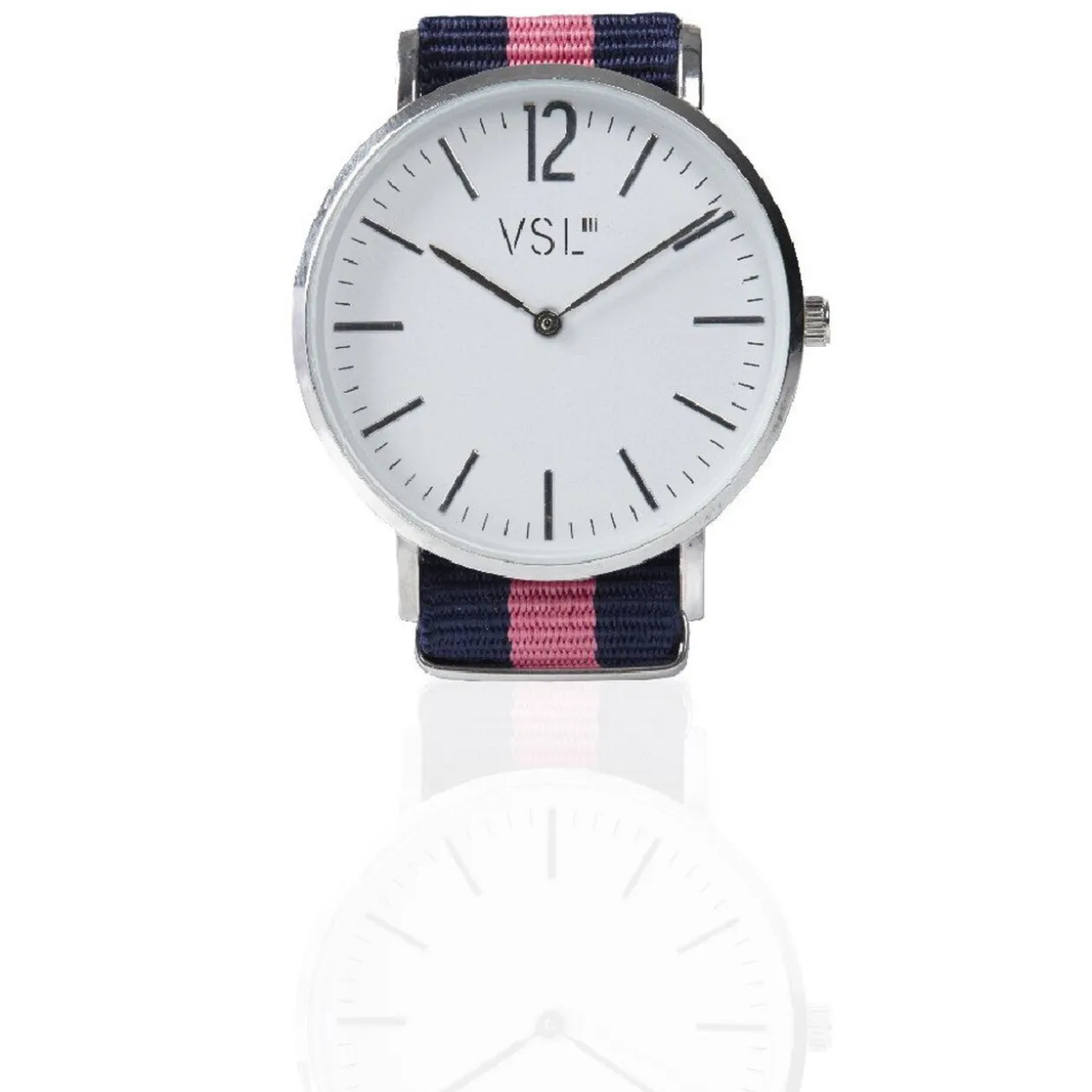 Montre bracelet de la marque VSL. Disponible en différents coloris selon les arrivages. Bracelet en polyester..