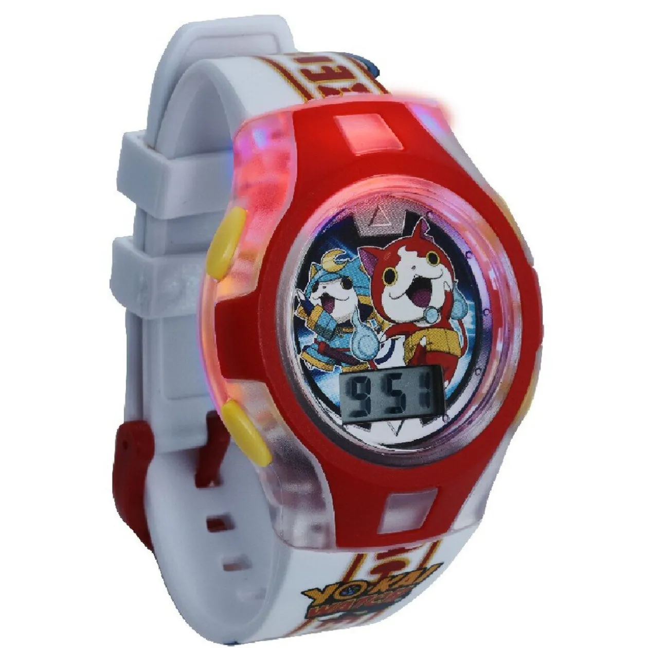 Montre bracelet pour enfant lumineuse à l’effigie des Yo Kai Watch. Affichage digital de l’heure donc accessible pour les enfants dès 5 ans. Disponible en bleu, rouge ou jaune selon les arrivages.