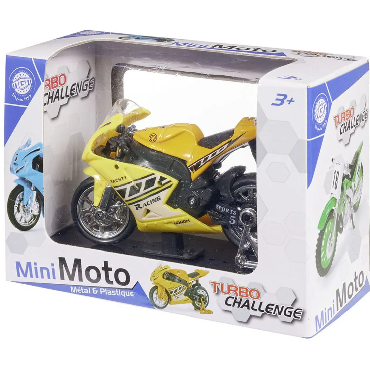 Idéale pour les amateurs de deux roues , cette moto de course miniature Turbo Challenge existe en 3 modèles.