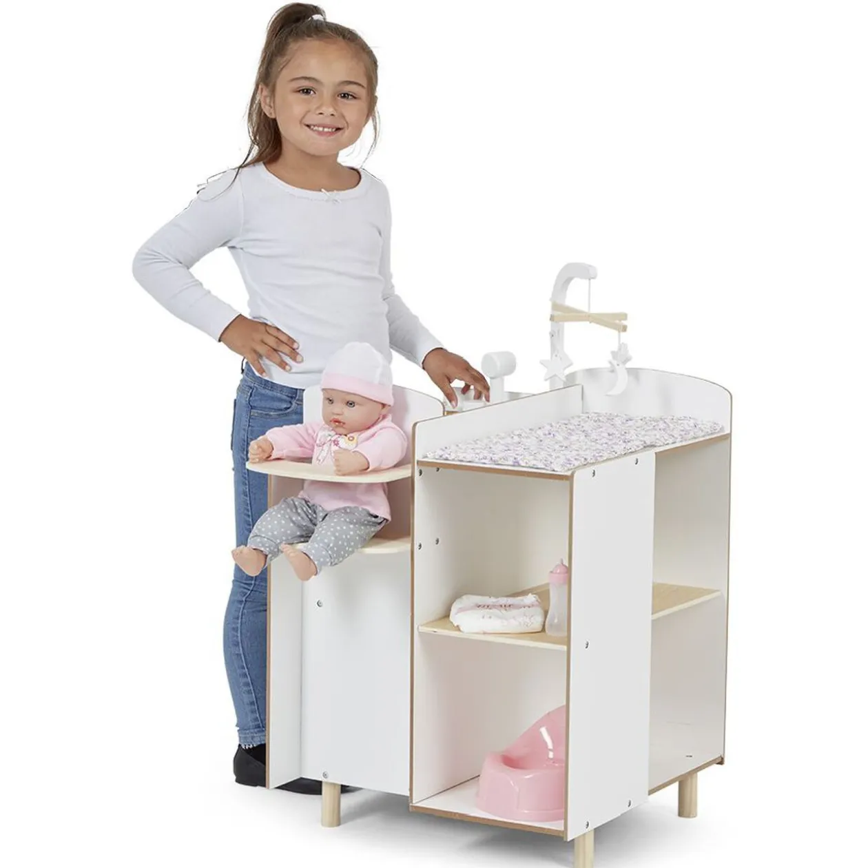 Cette nurserie tout en un est parfaite pour s’occuper d’un poupon jusqu’à 40 cm.